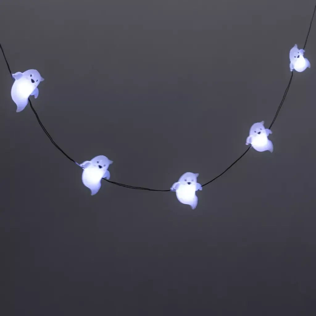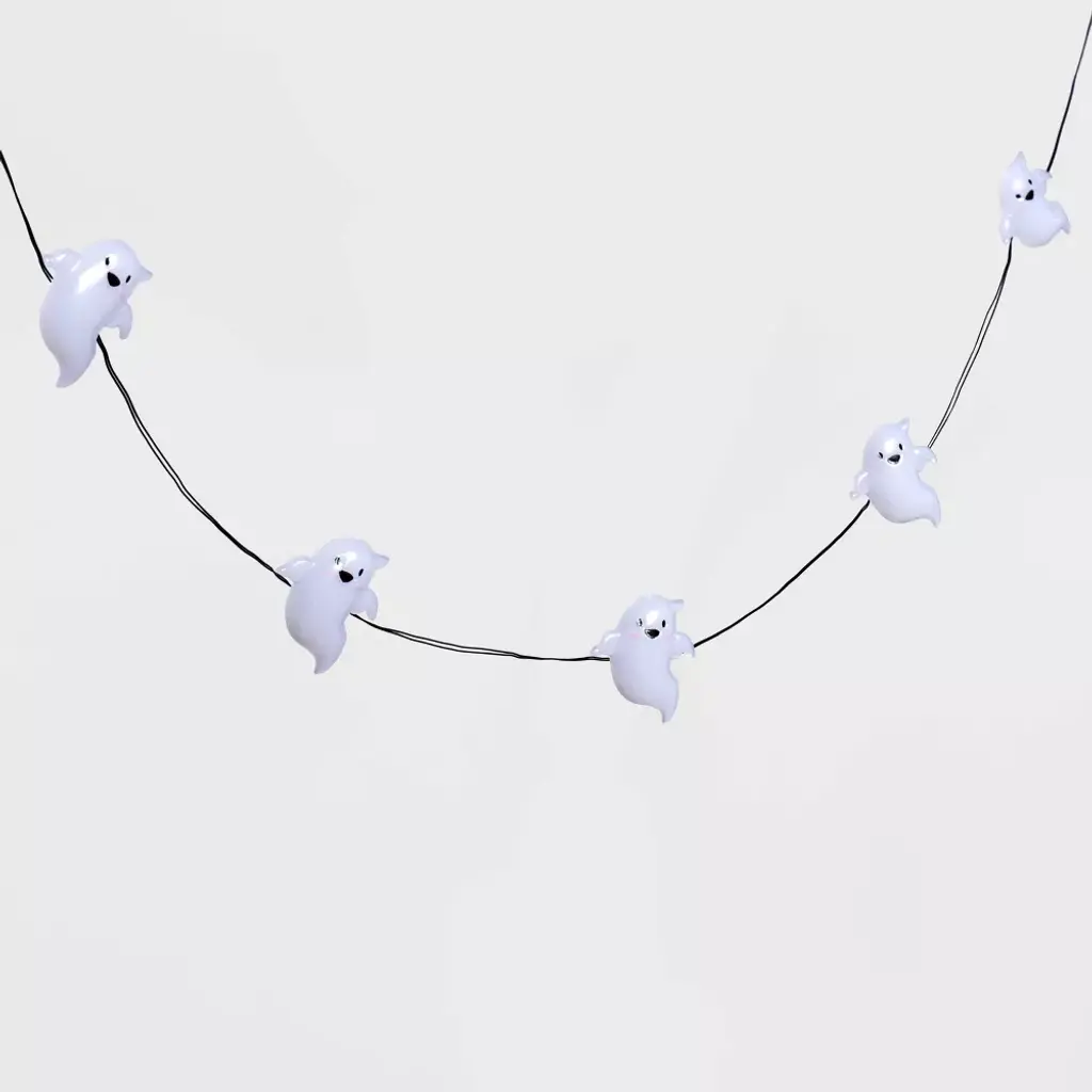 Bring an eerie glow to your spooky decor with these Ghost Reflector LED Bulbs Halloween String Lights from Hyde & EEK! Boutique™. These Halloween string lights feature 20 ghost-shaped reflectors arranged on a black wire that emit a constant light for an eerie display. Place these novelty string lights on your windows, mantelpiece, table or ceiling for a fun, spooky indoor arrangement, or you can display them on your front porch, over fences or around trees or shrubs to bring your haunted mansion to life.