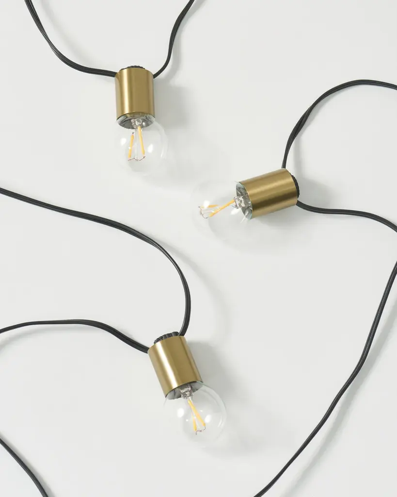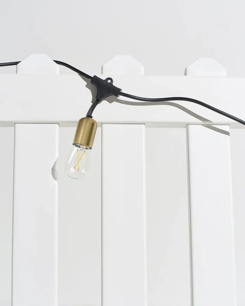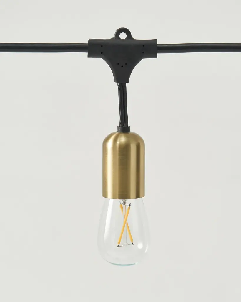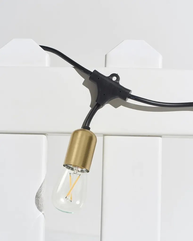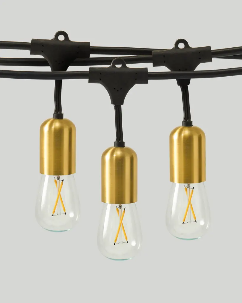 Encased with our heavy duty commercial-grade WeatherTite cables, these LED outdoor string lights are not only durable but stylish as well. With it’s modern brass color sockets, these will certainly turn heads at your next outdoor party.