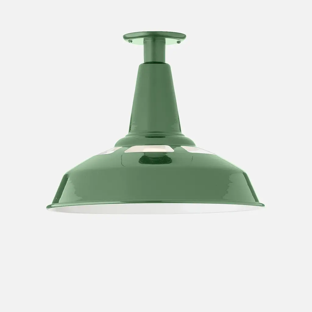 Industrial and utilitarian, the Factory Light 5 is a perfect example of traditional factory-style lighting made popular in the 1930s. Extra-wide opening allows for maximum cast light, and top cutouts add a sleek design element with the added function of releasing excess heat. Made from powder coated, hand-spun steel and produced on an RLM tool made exclusively for Schoolhouse. Assembled in our Portland, Ore. factory using ethically-sourced domestic and global components. A Schoolhouse Original.