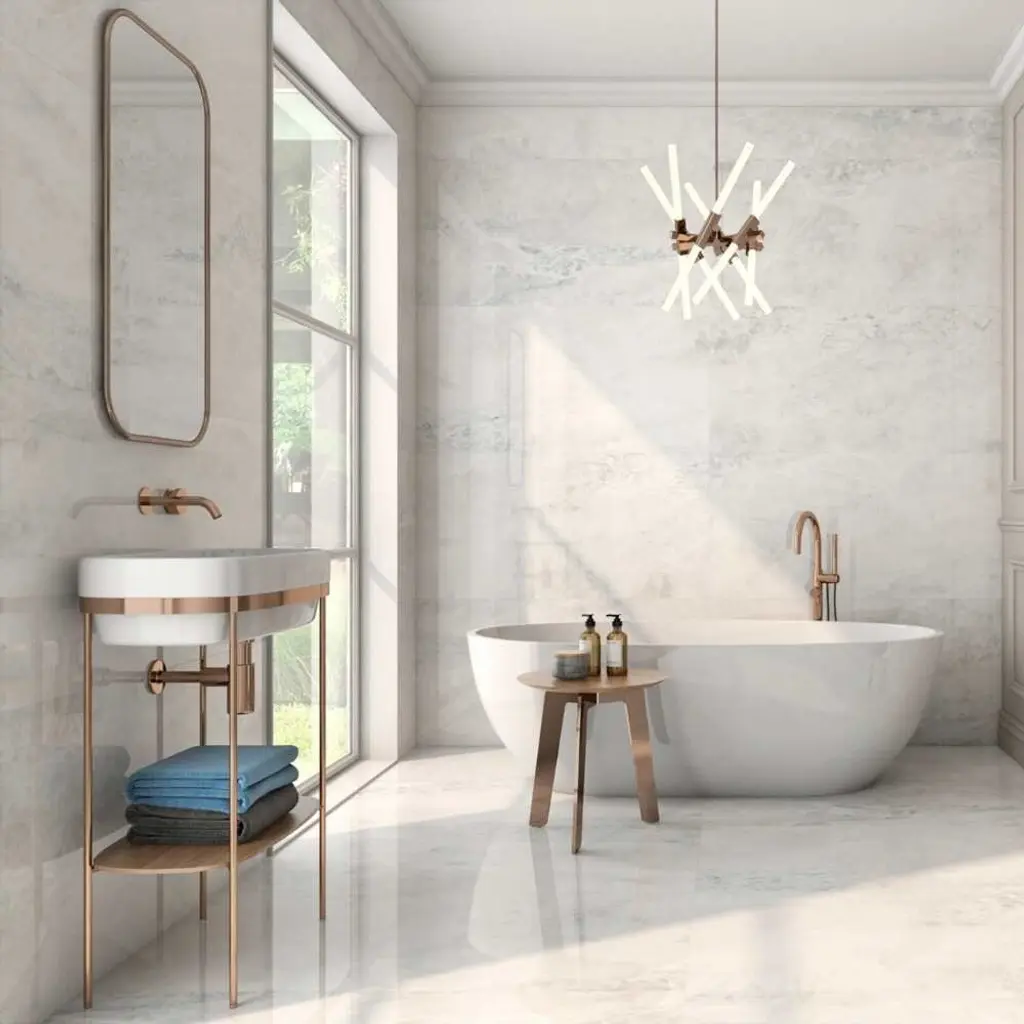 Made from the highest quality porcelain, our Adin collection stands out due to its durability, unique veined appearance, and beautiful coloring. Sized as a 24-inch x 48-inch large format tile, Adin is available in two colors with a polished finish, seamlessly blending into any room. This collection is ideal for designers hoping to replicate the look and feel of naturally veined marble. FEATURES: Vibrant colors 20 Different faces Impervious and waterproof PEI 4 Polished porcelain tile Easy to install 24" x 48" large format porcelain tiles Ideal for bathroom, shower, kitchen floors and walls DIMENSIONS: Individual tile: 24-inch x 48-inch Overall product weight: 78 lbs. Surface area per carton: 15.49 square feet
