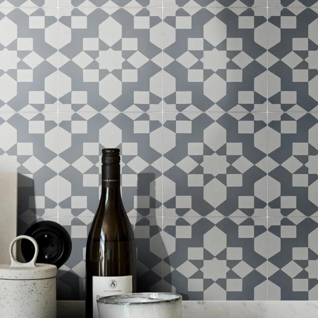 Affos Handmade Cement Tile,8x8, White-Grey ,Pack Of 12 Tiles ( Morocco) - Sample-1 Tile