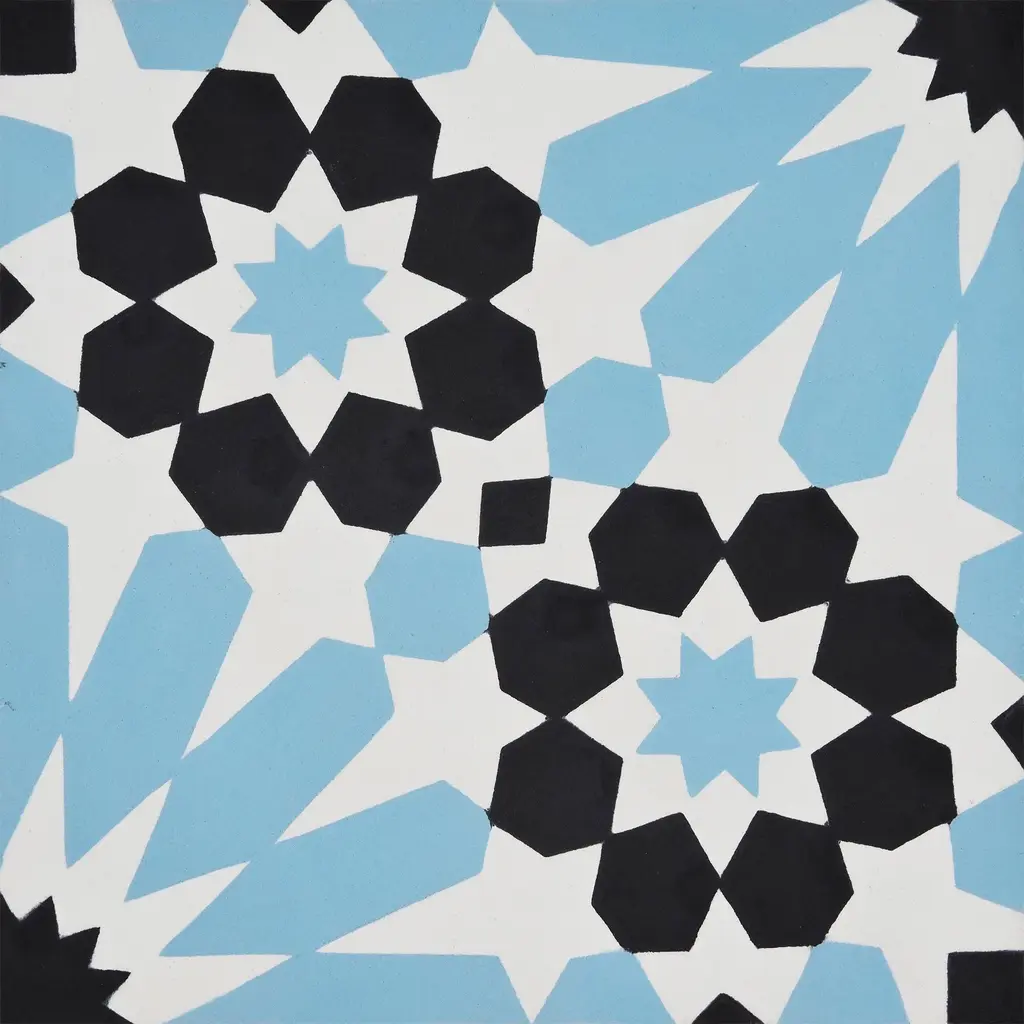 Agdal Handmade Cement Tile, 8X8, Black-Sky Blue - Sample-1 Tile