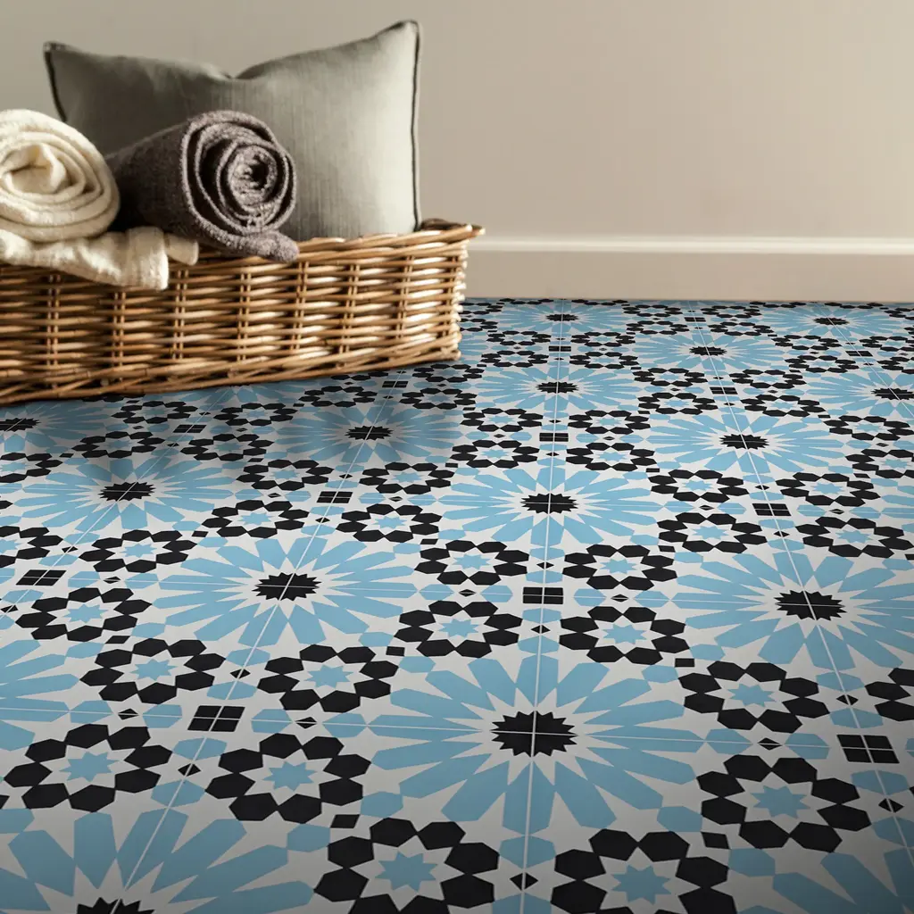 Design a dazzling backsplash, floor, or wall with these stunning tiles. Handmade by skilled Moroccan artisans for superior craftsmanship and traditional authenticity. These decorative tiles made from cement are durable indoors and outdoors. Weather-resistant and waterproof, the eco-friendly Moroccan tiles support your commitment to a greener home. Features:Other Sections:Story Behind the Art: "It's more than tile, it's art." That simple statement is what sets the craftsmanship of Moroccan Mosaic apart from the rest. Based in the small city of Sale, Moroccan Mosaic is a family business going back 4 generations. When Simo, the current head of the business graduated from university in New York, he had little interest in the family business. But on a return trip home, he saw that the business was not doing well and set about reviving it. One important change he made was introducing black, grey, and white designs to appeal to American and European customers. It worked. When he started, they employed 2 workers and now they have nearly 80 on staff. The workshop itself is fairly simple, and the techniques used to create the tiles are steeped in tradition. Some modern equipment is available, though the workers prefer to use the more rustic tools. The creative process is time intensive and done by hand, as Simo insists on no corners be cut or production be rushed. Environmentally responsible and resource efficient, no chemicals are used at any step. For example, colors used come from nature literally. Green comes from mint leaves, orange from orange peel, and black from charcoal. The tiles themselves are a simple mixture of cement, sand, and granite powder. Moroccan Mosaic hires only local workers, teaching them a valued skill as well as paying them fair wages. Simo's goals for his business are to share the tradition of gorgeous Moroccan tile, grow the business, and employ more and more workers.