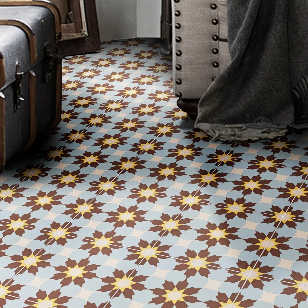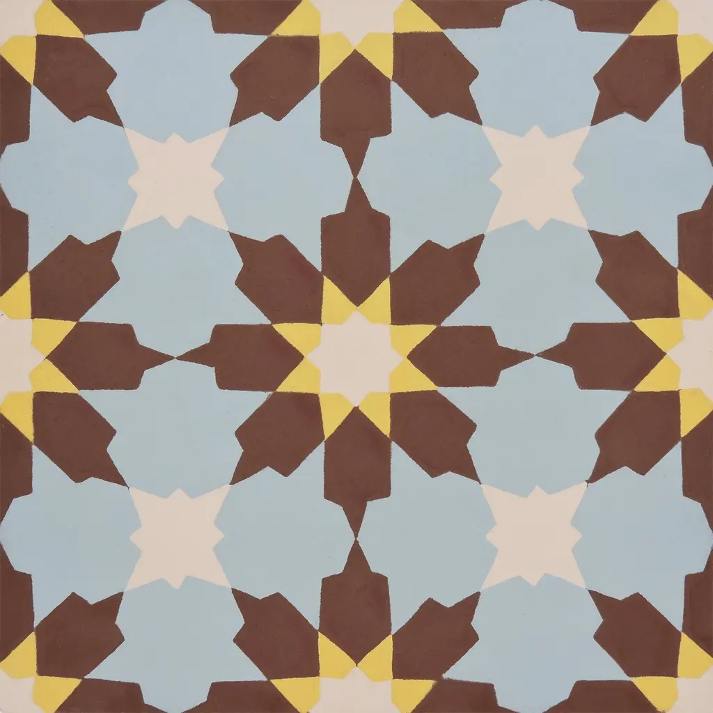 Ahfir Handmade Cement Tile, 8X8, Brown/blue/yellow - Sample-1 Tile