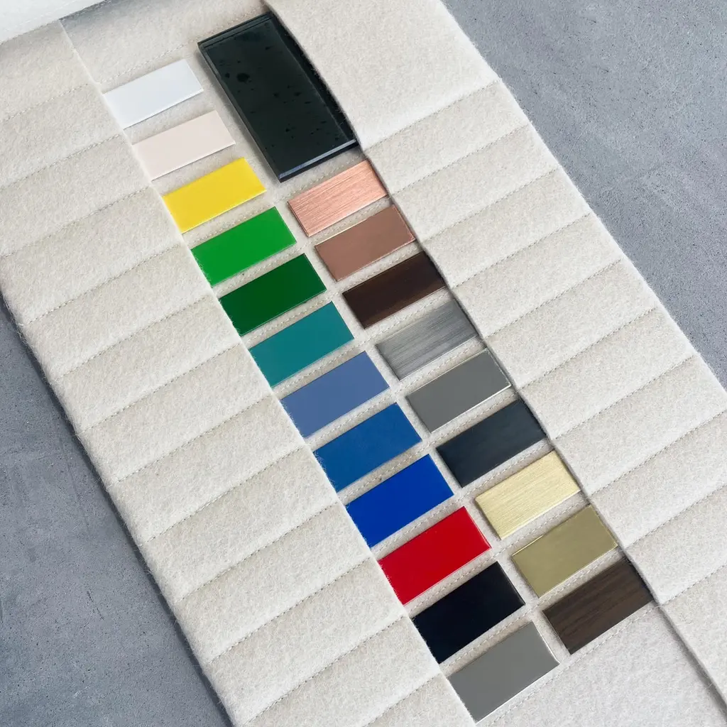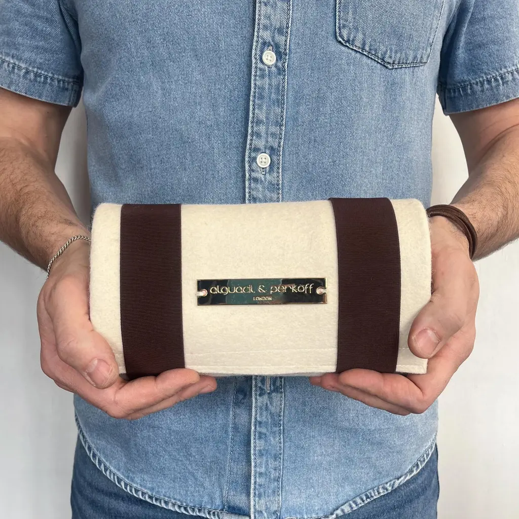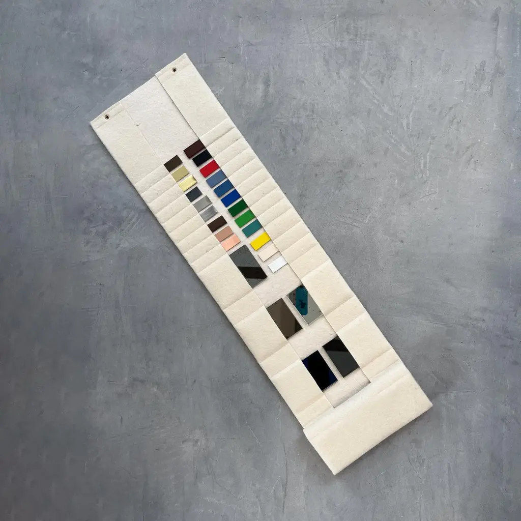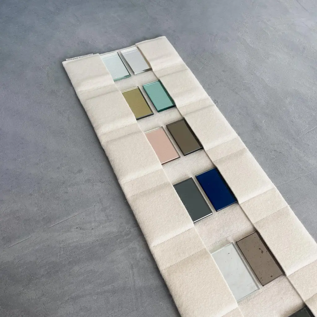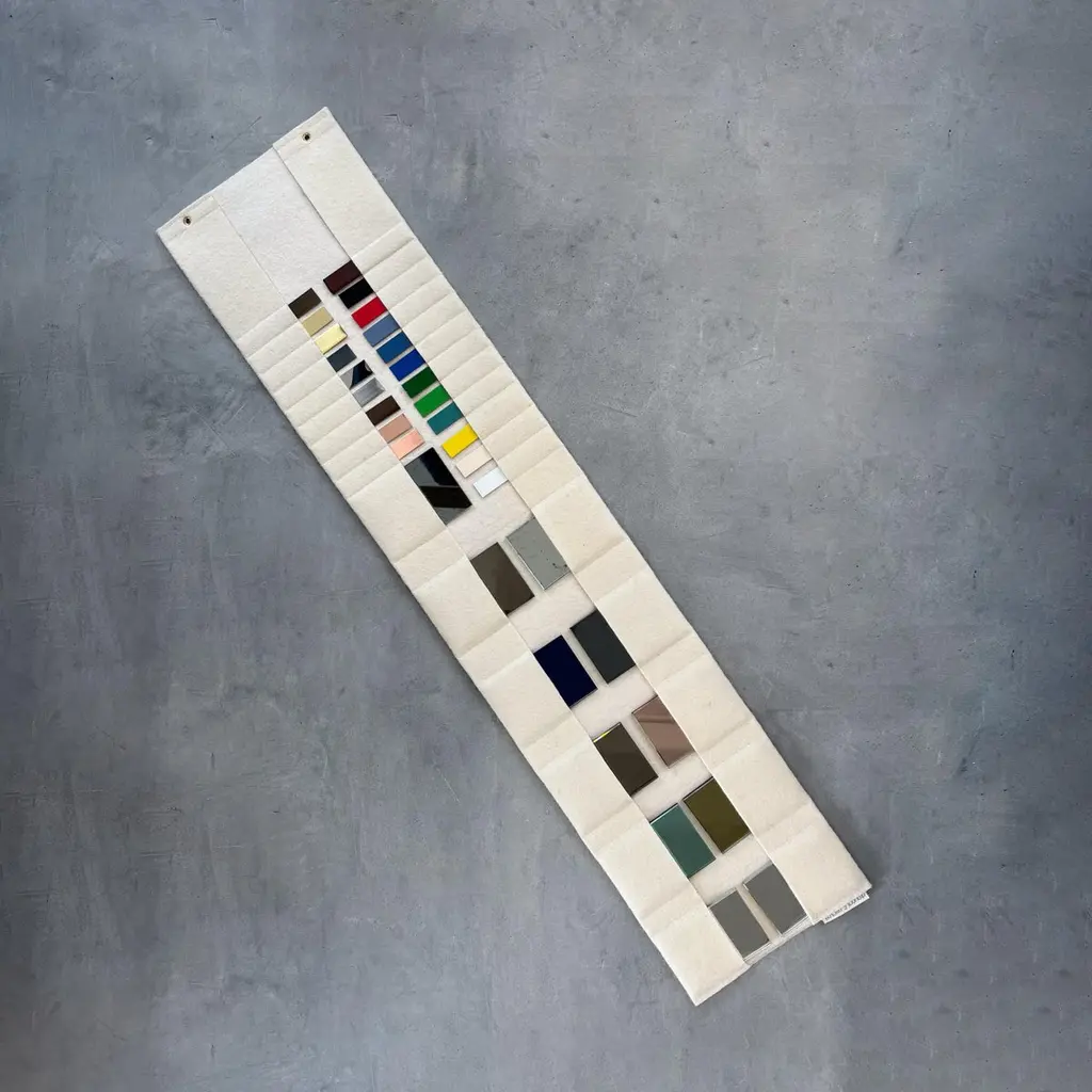 Alguacil & Perkoff complete sample case has been designed for trade professionals to review or present the variety of mirror tints and frame finishes we offer or to use in their mood boards.Handmade with wool felt, the case has individual pouches that protect each sample. It can be laid flat on a table or it can be hung from the wall to practically see the different options.Please, get in touch with our team if you wish to order individual samples. An illustrated guide of options & finishes is also available on demand.Shipped safely and insured worldwide.Prices on the website do not include local taxes and/or applicable import duties for deliveries outside of the United Kingdom.ORDERS OF MULTIPLE MIRRORS OF THE SAME TYPE: Please contact us to receive a Packing and Shipping quote when ordering multiple mirrors of the same type. An order for multiple mirrors of the same type may not be accepted without extra packing and shipping fees. Thank you.
