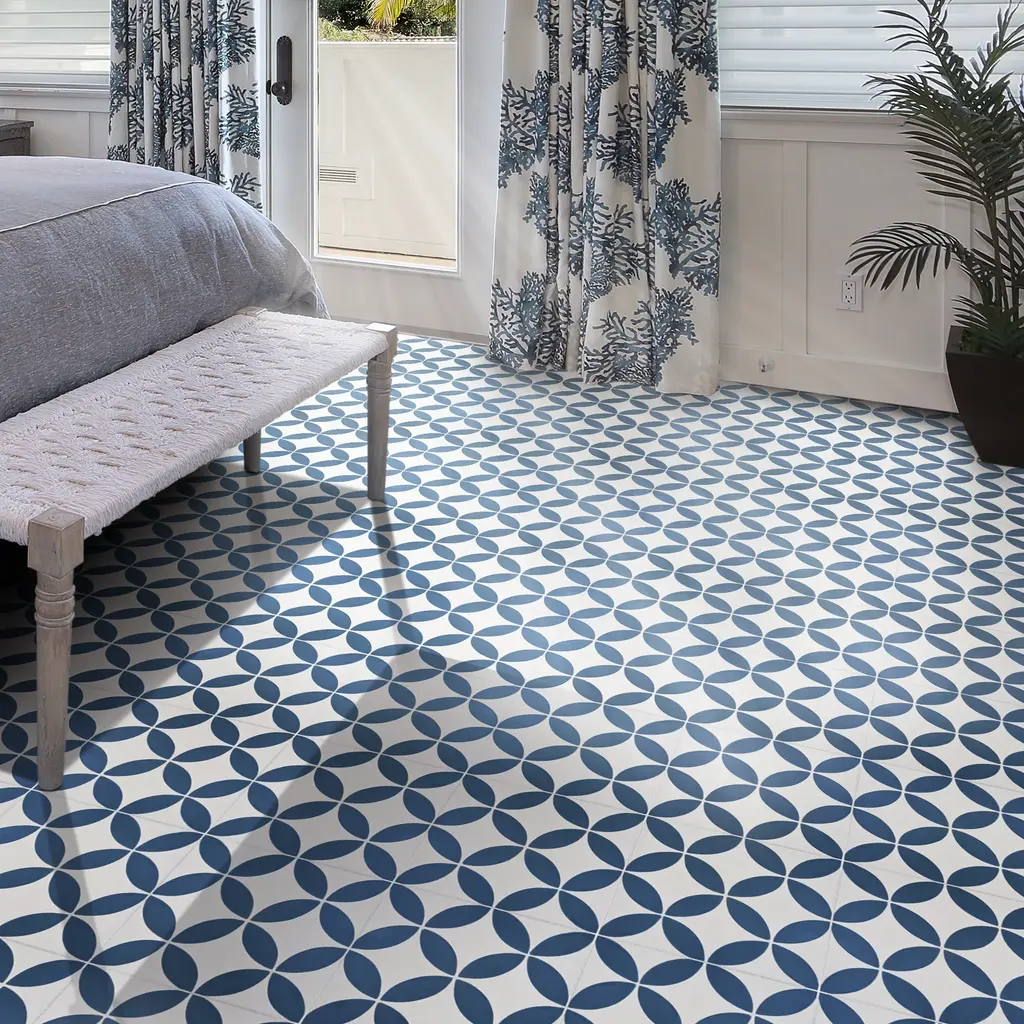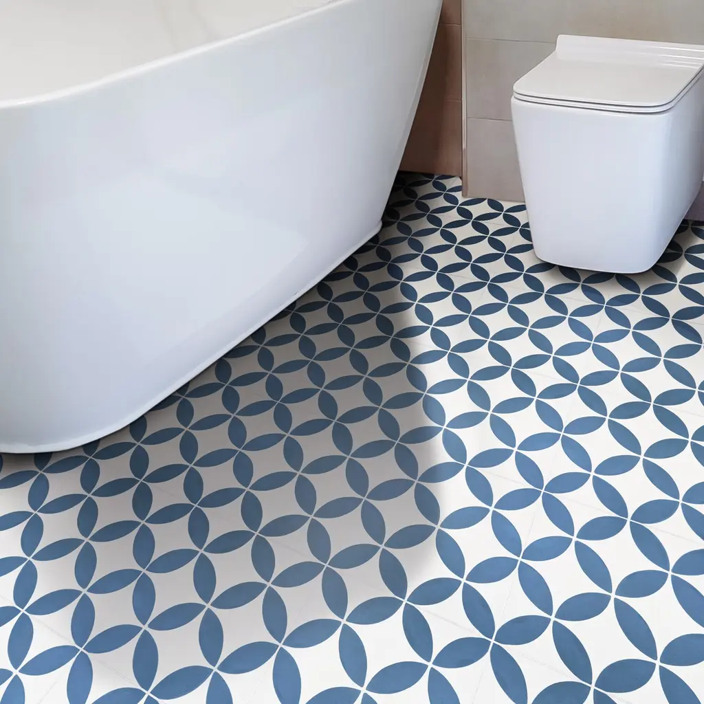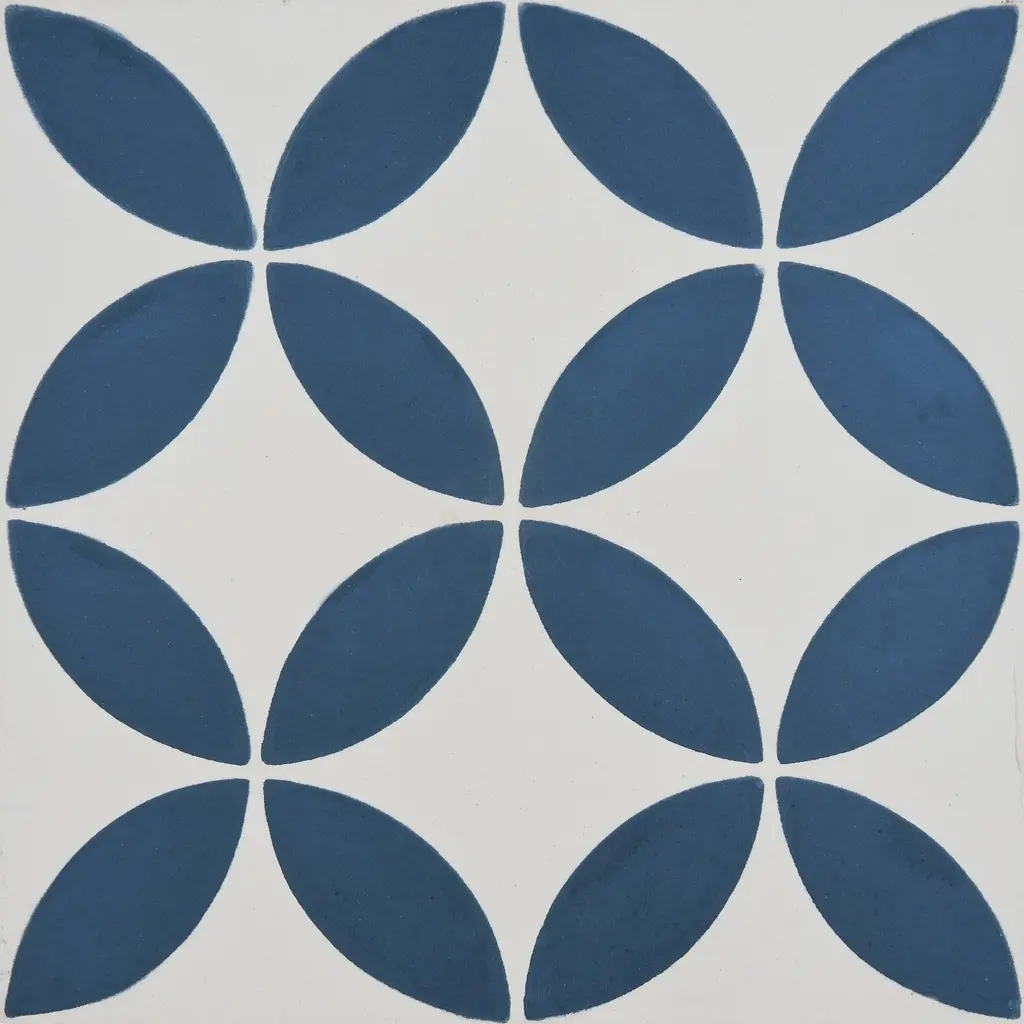 Amlo Handmade Cement Tile, 8X8, White-Navy - Sample-1 Tile