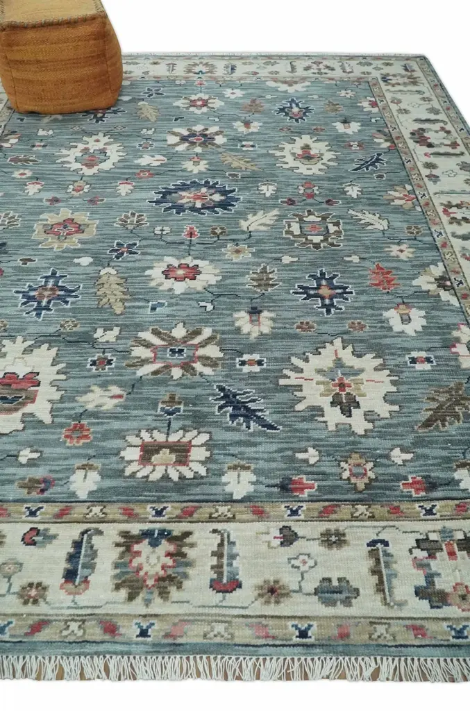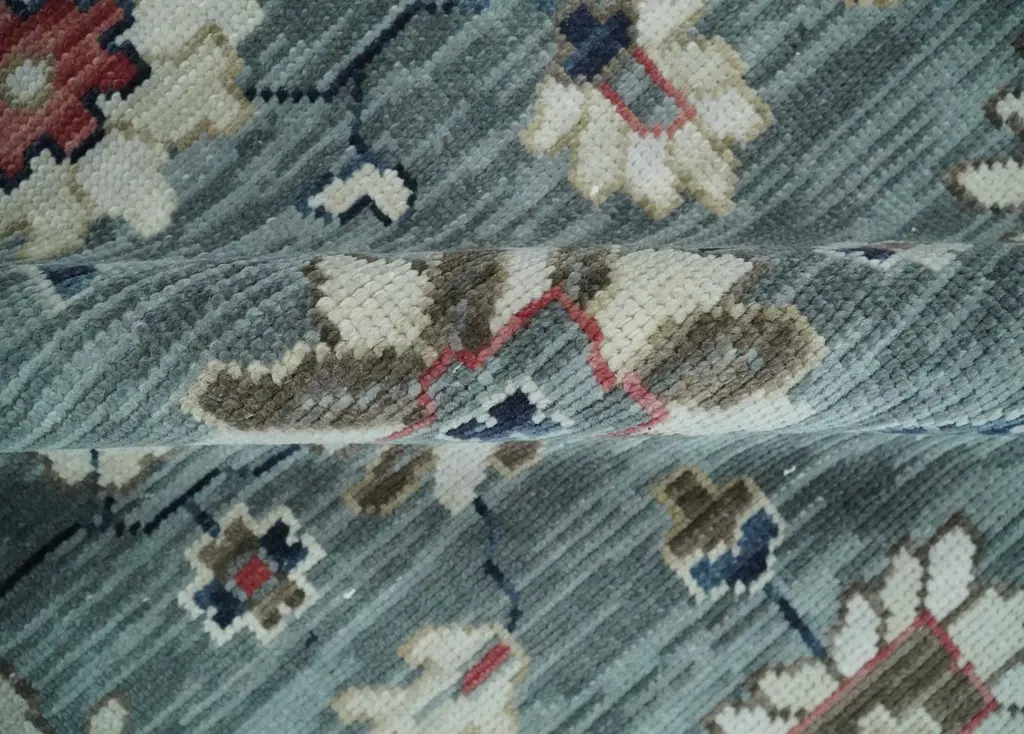 The resurrected collection consists of rugs that carry the age-old designs, colors, and patterns of handmade rugs with a new and fresh feel to them. This Hand-Knotted Rug has been Made with Handspun Wool. The beautiful colors of the rug carry a legacy of the famous Oushak rug, the traditional design of the rug completes your space without making it look busy. Oushak rugs are durable and can last for decades if treated right. Hand-Knotted SIZES ARE MADE TO ORDER IN 30-45 DAYS Made with Wool Color : Gray Silver, Ivory and Beige This specific rug is made in India, in the city of Bhadohi. Bhadohi is one of the biggest rug manufacturing cities. Carpet weaving in the region dates back to the 16th century during the reign of Akbar. The skilled artisans of Bhadohi have been carrying the tradition of rug-making for centuries. USERS GUIDE Avoid prolonged moisture Vacuum regularly and/or shake to remove dust Do not pull any loose threads. Use scissors to simply cut the ends The blot spills immediately with a white cloth. Harsh chemicals may damage or fade the rug Use rug protectors under heavy furniture