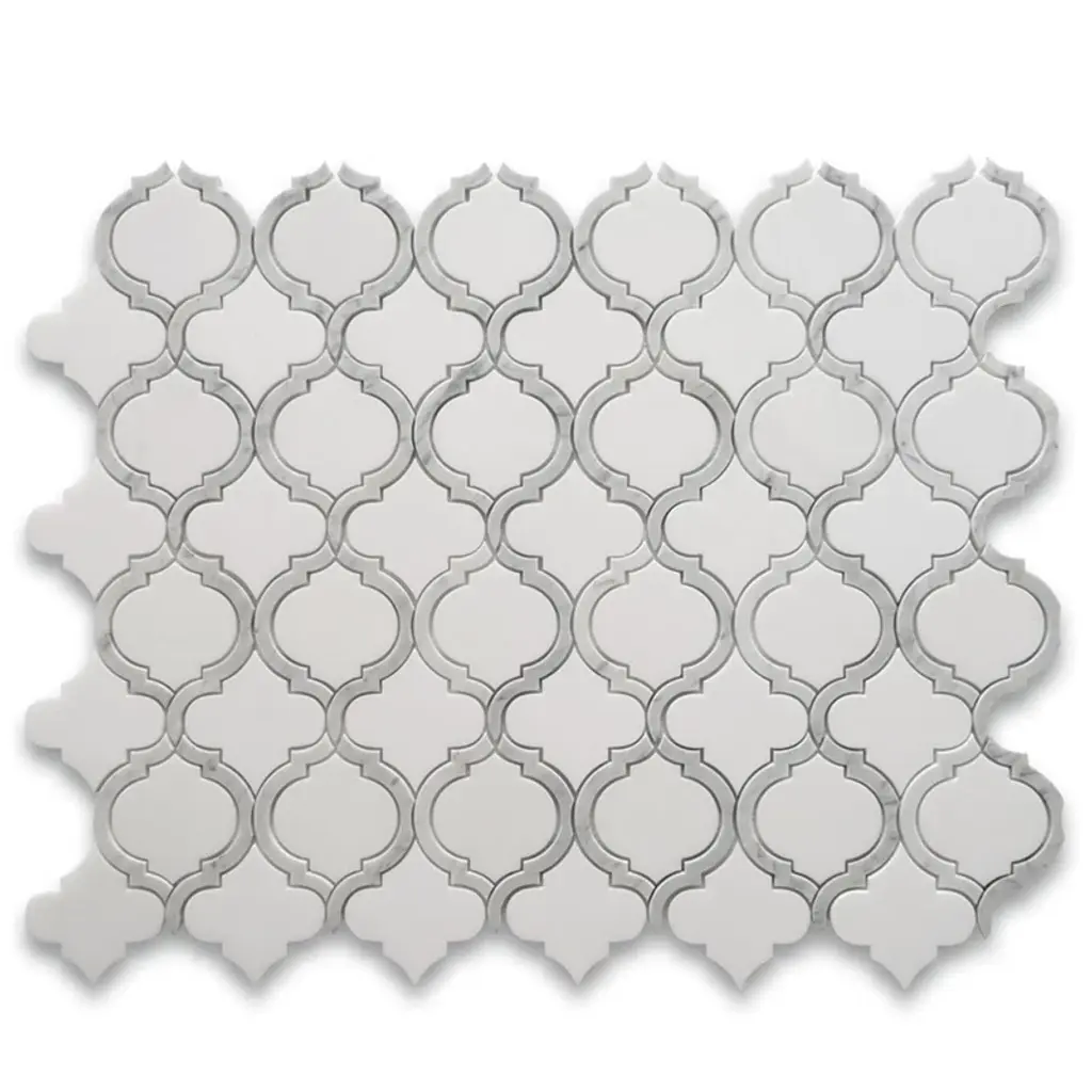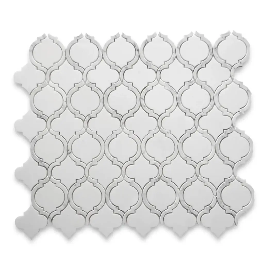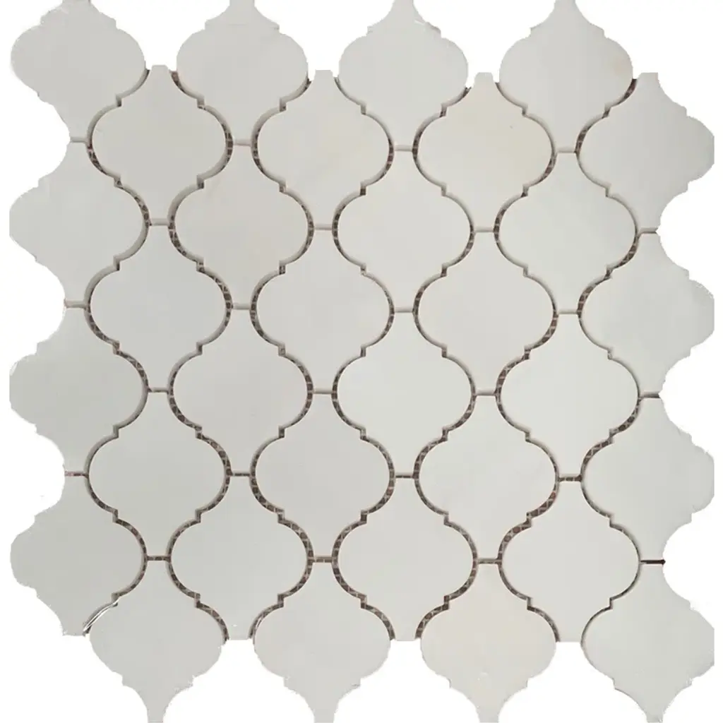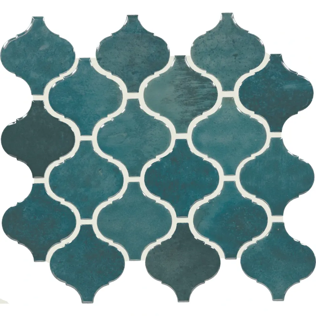 Porcelain Retro Arabesque / Moroccan / Lantern design Mosaic Tiles. It's easy to add a splash of contemporary styling to your decor. This attractive tile features arabesque patterned pieces of glazed porcelain mesh sheet that make installation a much easier process. With elegant shades, this glossy porcelain creates a distinct pattern for various installation projects in bathrooms, kitchens, and other residential or commercial spaces.What's Included?Product DetailsSample Details