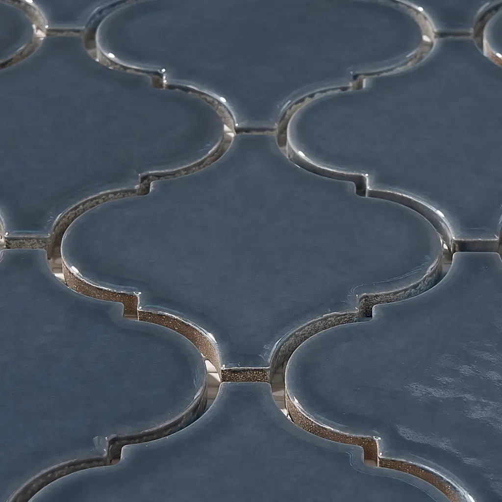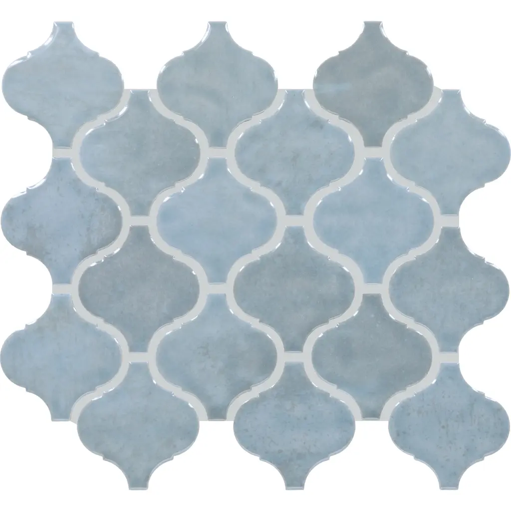 Arabesque 3.3" X 3.4" Porcelain Glossy Mosaic Tile - Sample - Blue