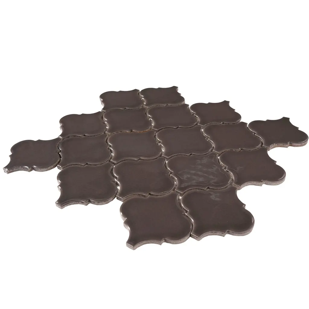 Arabesque 3.3" X 3.4" Porcelain Glossy Mosaic Tile - Sample - Brown