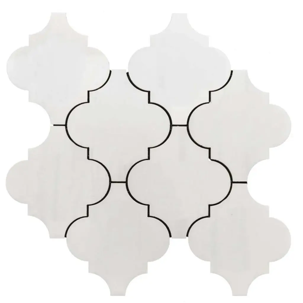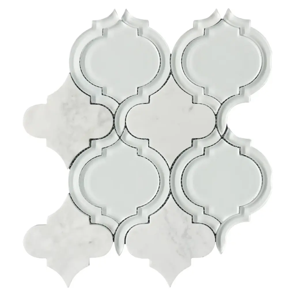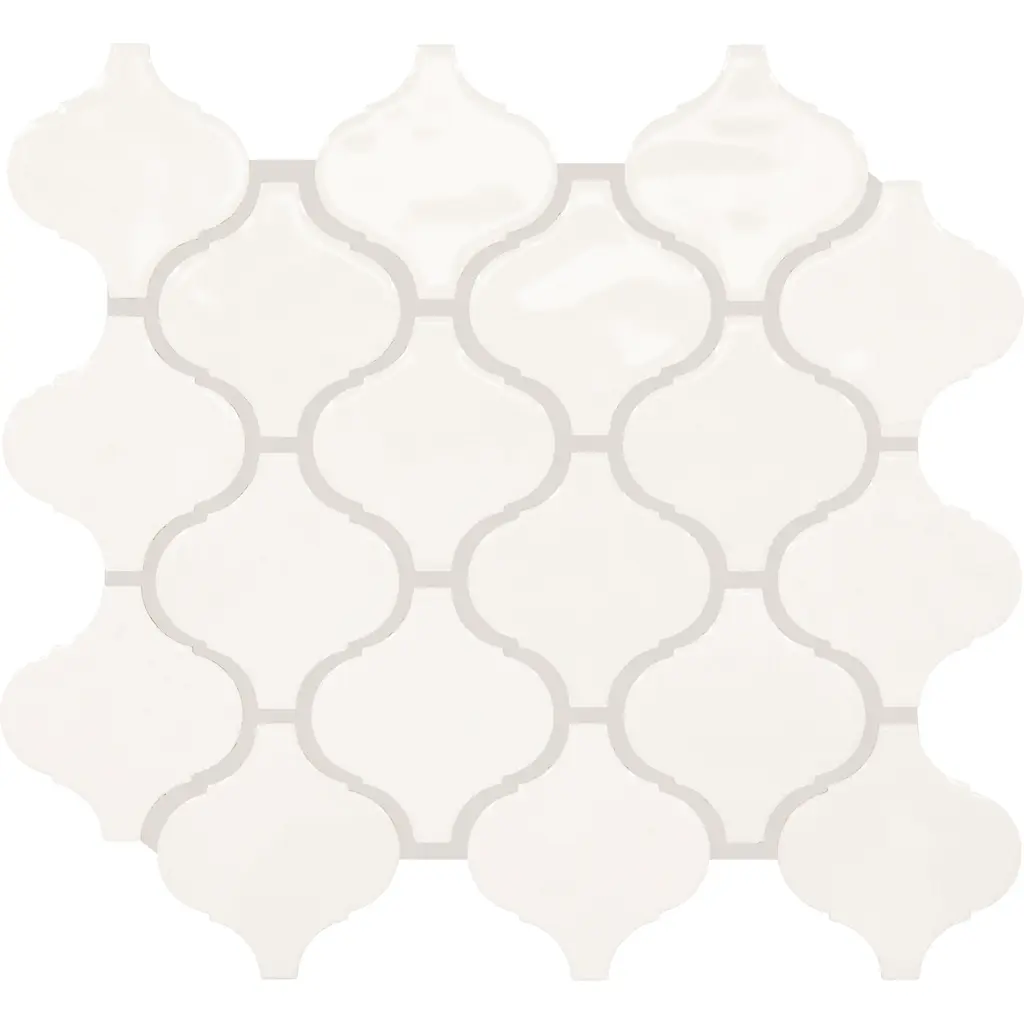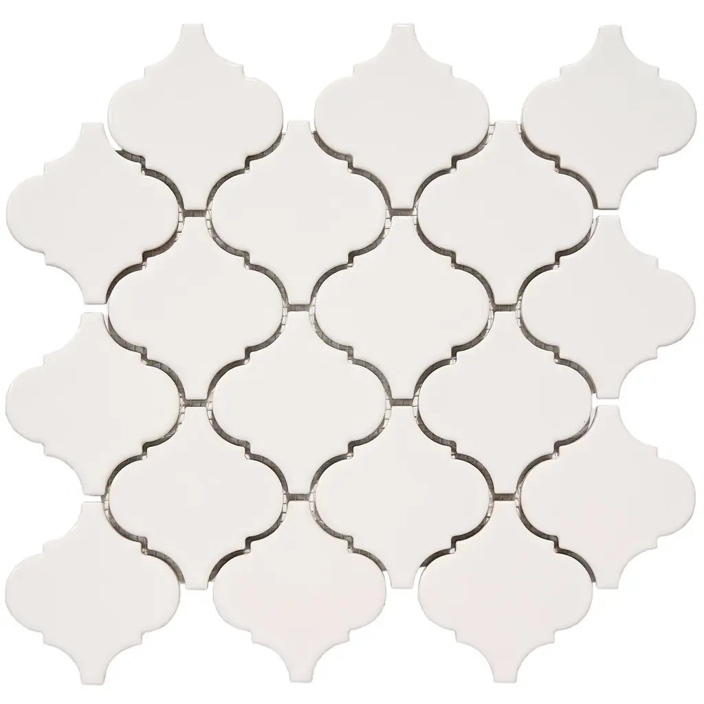 Porcelain Retro Arabesque / Moroccan / Lantern design Mosaic Tiles. It's easy to add a splash of contemporary styling to your decor. This attractive tile features arabesque patterned pieces of glazed porcelain mesh sheet that make installation a much easier process. With elegant shades, this glossy porcelain creates a distinct pattern for various installation projects in bathrooms, kitchens, and other residential or commercial spaces.What's Included?Product DetailsSample Details