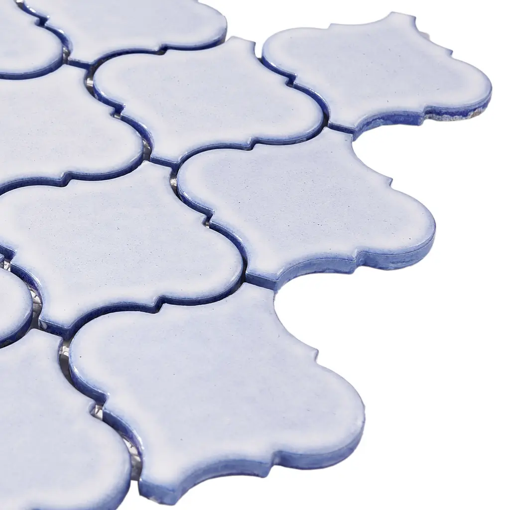 Arabesque 3.3" X 3.4" Porcelain Glossy Mosaic Tile - Sample - Light Blue