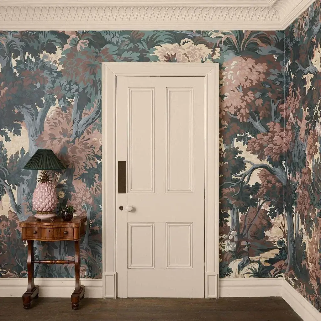 Journey through the arboreal delights of French historical archive prints and 16th century verdure tapestries with ARBOREA. In muted tones of greens and earthy, grounding pink-brown, this mural wallpaper will bring a touch of the old world into your home.