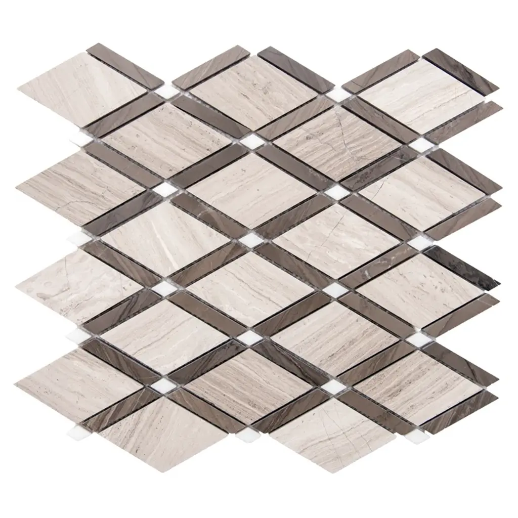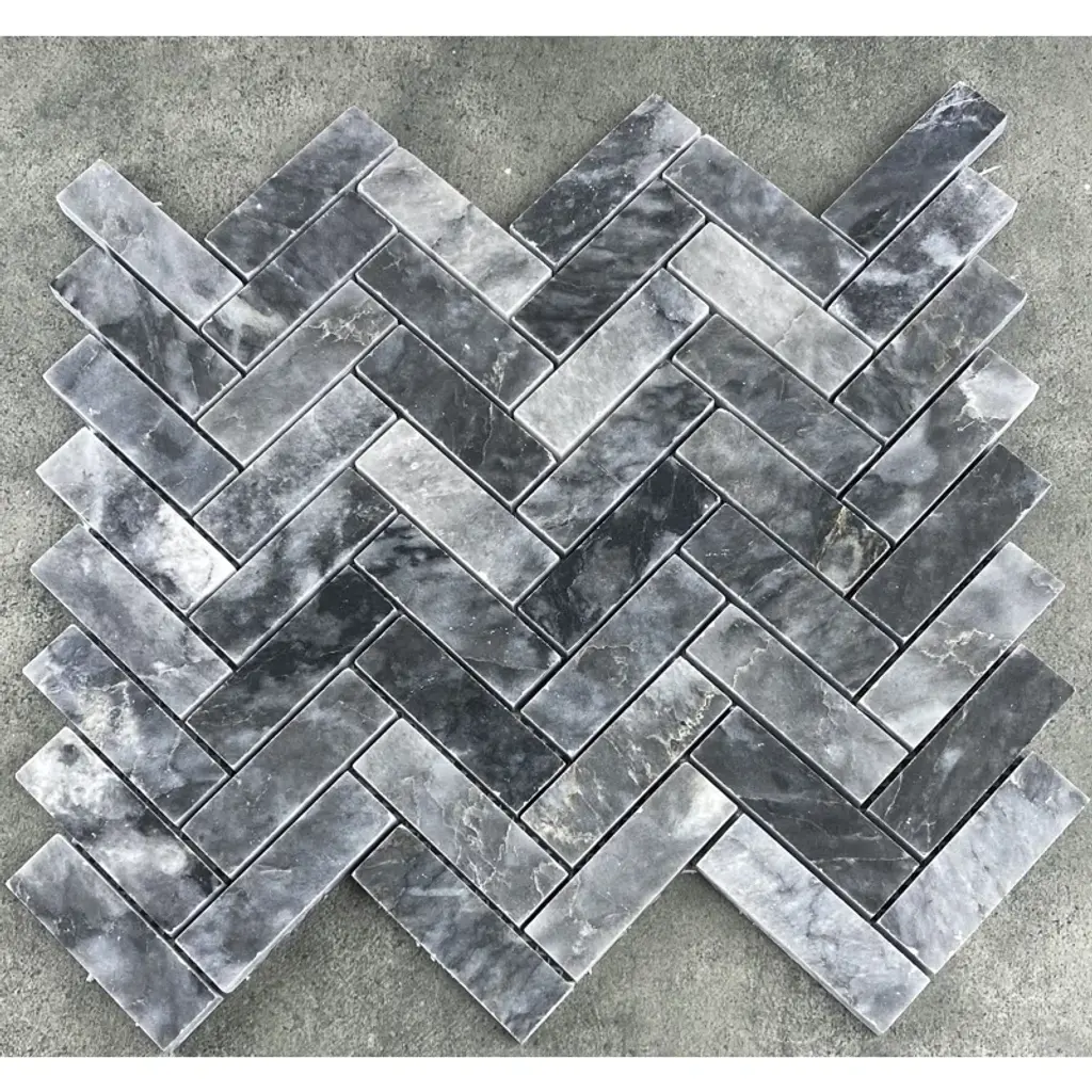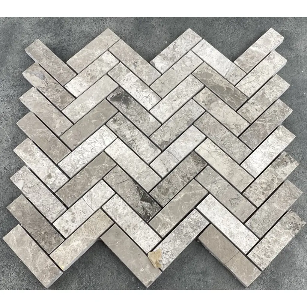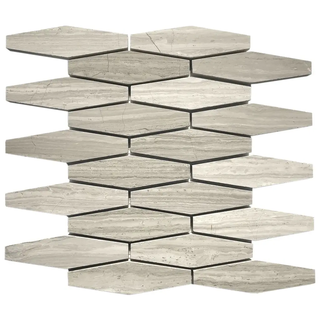 Silver Travertine 1.25''x6'' Insignia Mosaic Tile is a stylish and sophisticated mosaic tile made of small rectangular pieces of silver-colored material arranged in a unique and eye-catching pattern. The tiles measure 1.25 inches by 6 inches and have a uniform and honed finish, giving them a sleek and polished look. The silver color adds a touch of elegance to the design, making it suitable for use in modern interiors. The mosaic is versatile and can be used on walls, backsplashes, or floors, providing a seamless and luxurious finish to any space. The mosaic is easy to install and can be cut to fit specific areas, allowing for customization and flexibility in design. The durable materials and water-resistant finish make the Sterling 1.25''x6'' Insignia Mosaic Tile a great choice for use in bathrooms, kitchens, and other areas prone to moisture.What's included?Product Details Sample Details