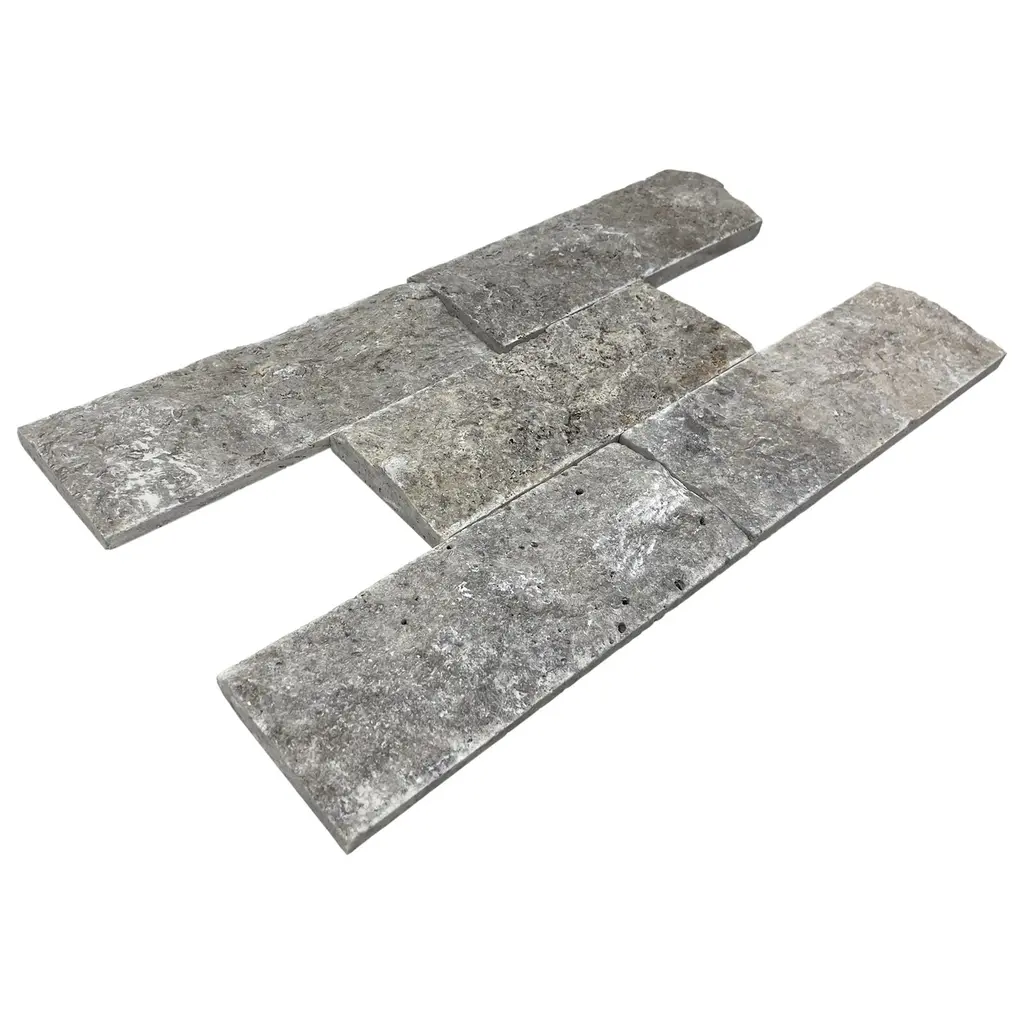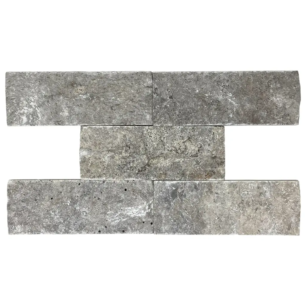 Argento Travertine 3" X 8" Split Face Tile - Sample - Silver