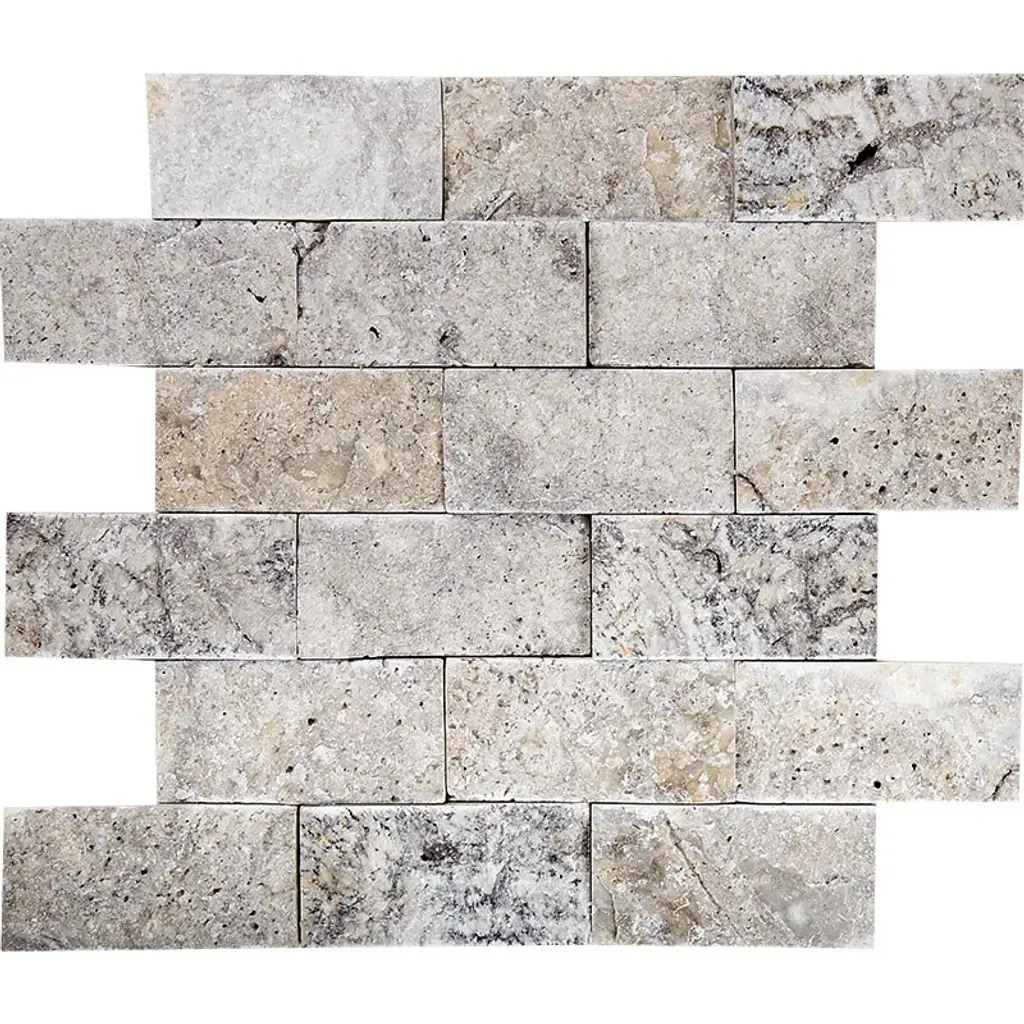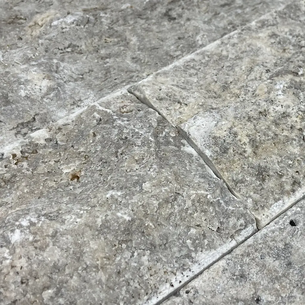 Introducing Silver Travertine 3"x8" Split Face Tile - a stunning and sophisticated tile that adds a touch of luxury and elegance to any space. Crafted from premium quality natural stone, each tile boasts a captivating and unique texture that showcases the natural beauty of the material. The thin split face design creates a modern and contemporary look, while the silver color adds a subtle shimmer and shine to your space. The 3x8 size of each tile makes it perfect for a variety of applications, including accent walls, fireplace surrounds, backsplashes, and more. Whether you're looking to create a sleek and modern living room or a chic and sophisticated bathroom, Sterling 3"x8" Split Face Tile is a perfect choice that will add texture and character to any space. Invest in the luxurious beauty of Sterling 3"x8" Split Face Tile and elevate your space to a new level of eleganceWhat's included?Product Details Sample Details