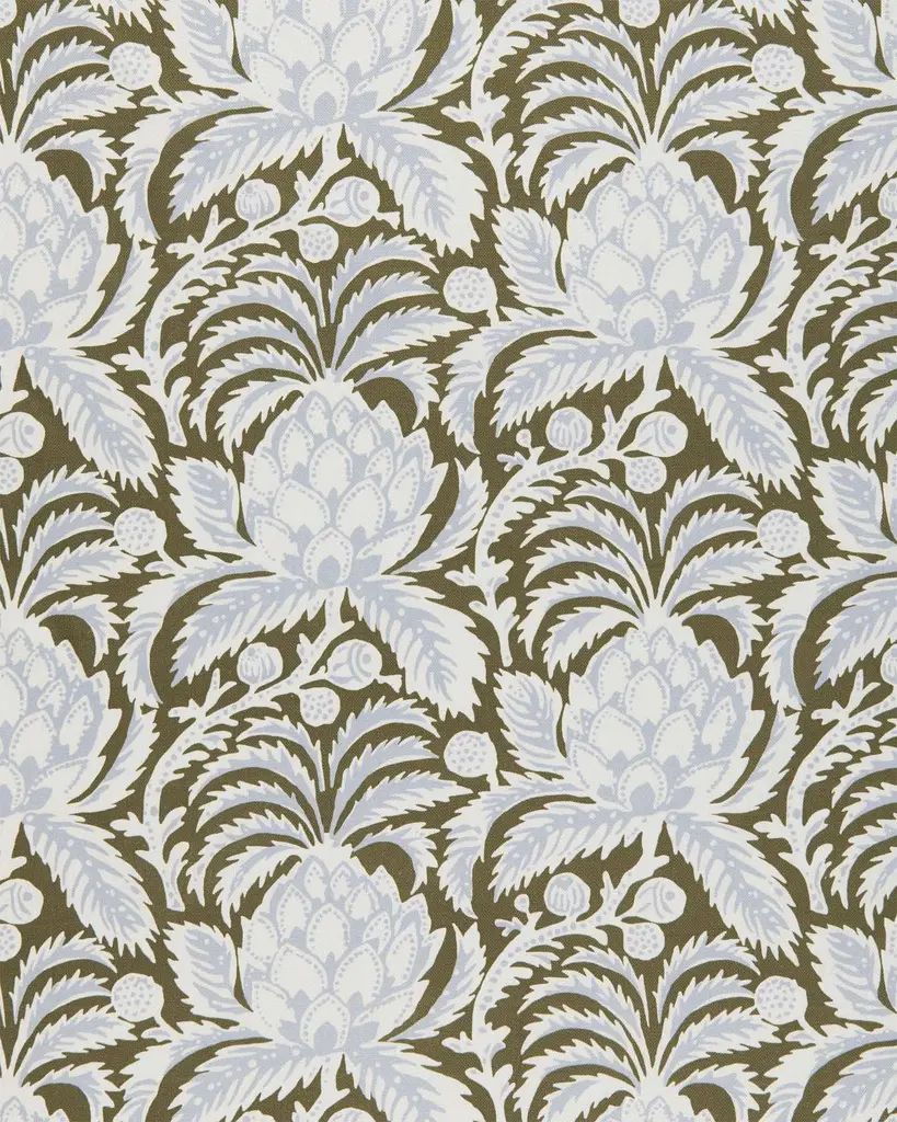 An antique English motif awakened by modern color. Scaled up. Dimensional. Decorous.