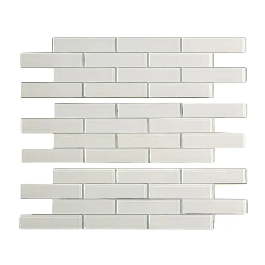 Elevate your kitchen with the sleek and elegant Aspect Glass 12x4-inch Matted Subway Tile in Frost Peel & Stick Tiles. These high-quality glass sheets are easy to install and mimic the look of a custom backsplash. Use them for backsplashes, walls, accents, cabinets, and more. Each pack contains three sheets, providing approximately one square foot of coverage. Please note that samples are a portion of the matted sheet and not suitable for installation.Features: