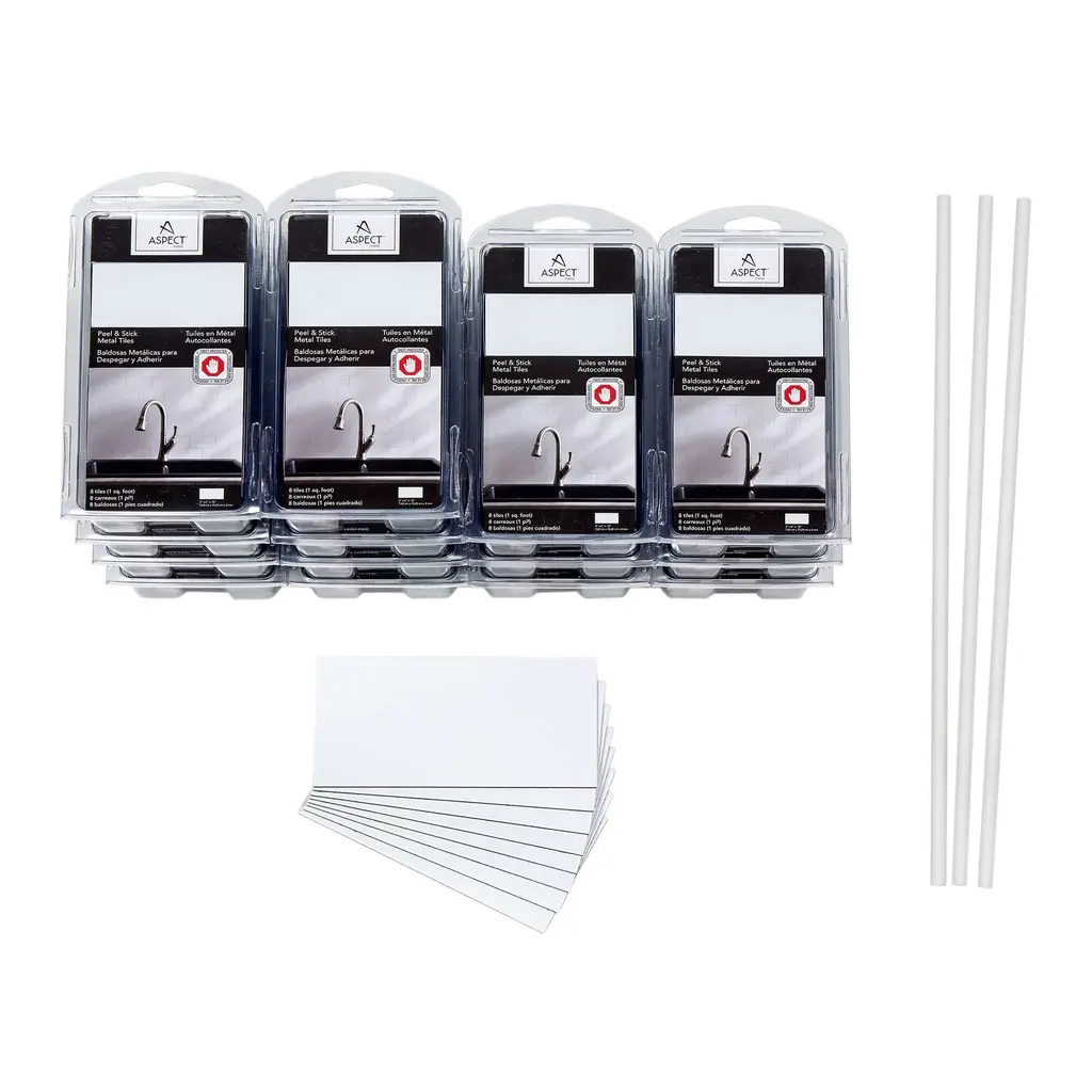 Elevate your kitchen's aesthetic with Aspect Glass 3x6-inch Tile in Frost. These tiles are made from 100% recyclable materials, making them an eco-friendly option. With a peel and stick application, you won't need to hire a tile installer, and additional adhesive can be used for added security. These tiles are versatile and can be used for backsplashes, walls, cabinets, accents, and more. Cleaning is a breeze with soapy water or glass cleaner, saving you time and effort.Features: