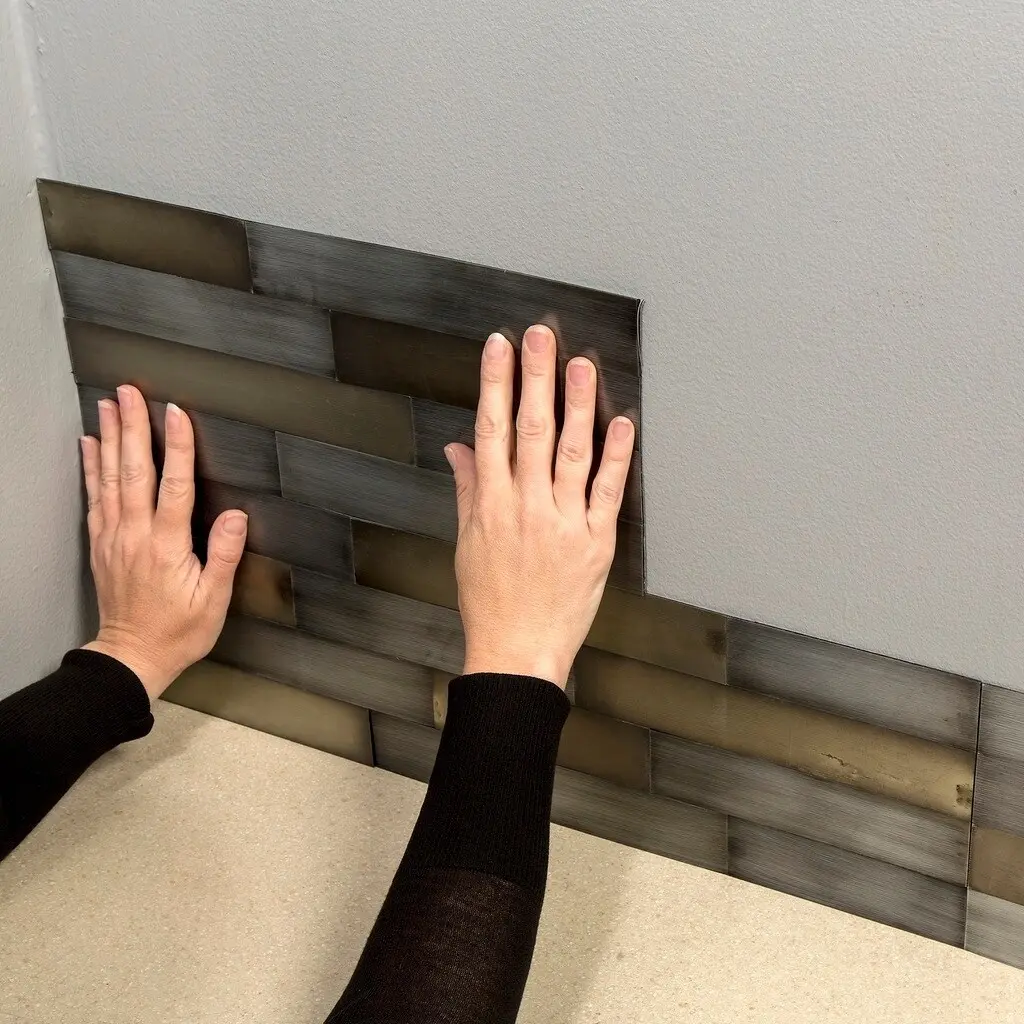 Elevate your walls with the aged charm of real metal using Aspect Peel & Stick Distressed Metal panels. Available in various beautiful colors, these mosaic-style panels are a DIY solution to transform any room without the need for a contractor. The combination of tin and steel alloy delivers long-lasting durability while the chemical process creates unique variations in color. Measuring 23.6" x 5.9" x 0.08" thick per panel, you can quickly cover larger areas with ease. Perfect for full walls or accent pieces that complement any decor trend.Features: