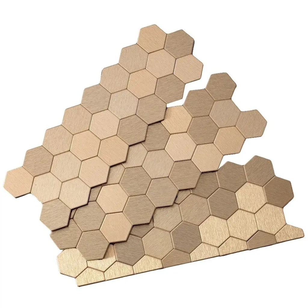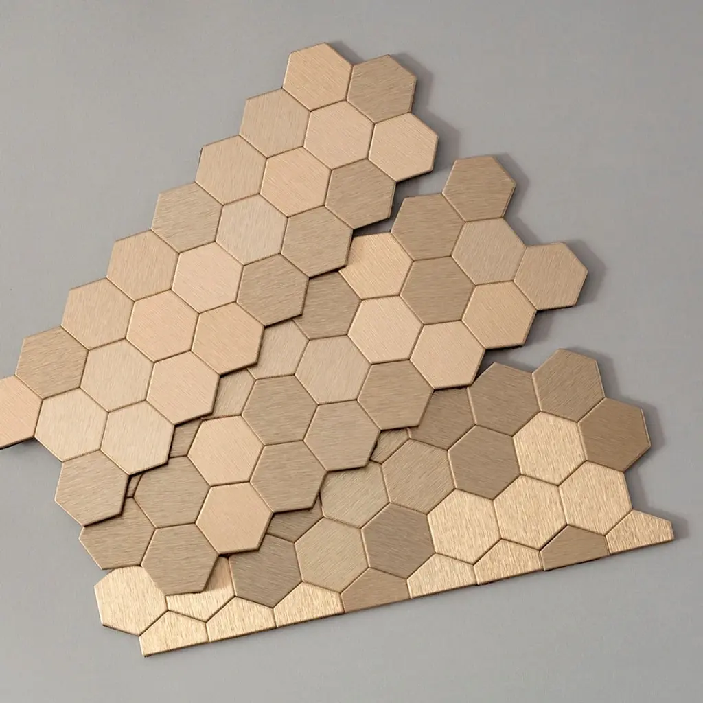 Aspect Peel And Stick Backsplash 11in X 4In Honeycomb Champagne Matted Metal Tile (3-Pack) - Sample - Champagne
