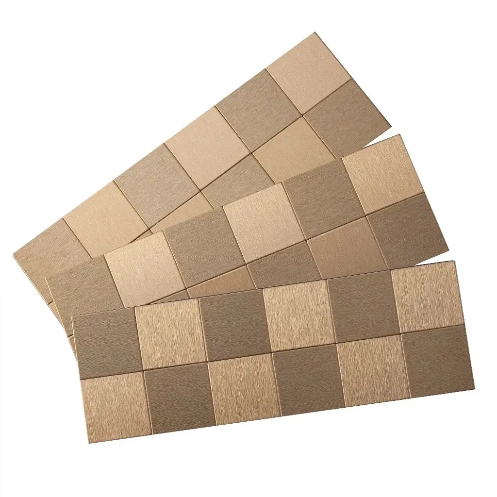 Aspect Peel And Stick Backsplash 12in X 4In Square Champagne Matted Metal Tile (3-Pack) - Sample - Champagne