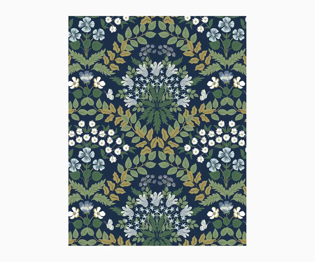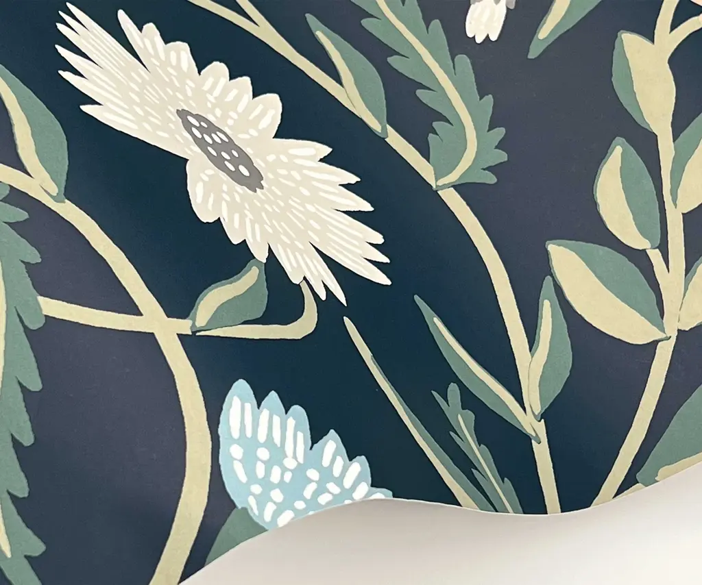 8" x 10" sample of our Aster wallpaper. Swirling stems and showy blooms pop on our large-scale Aster wallpaper. This wallpaper is screen printed and comes in 27 inch rolls with a 24.25 inch repeat.