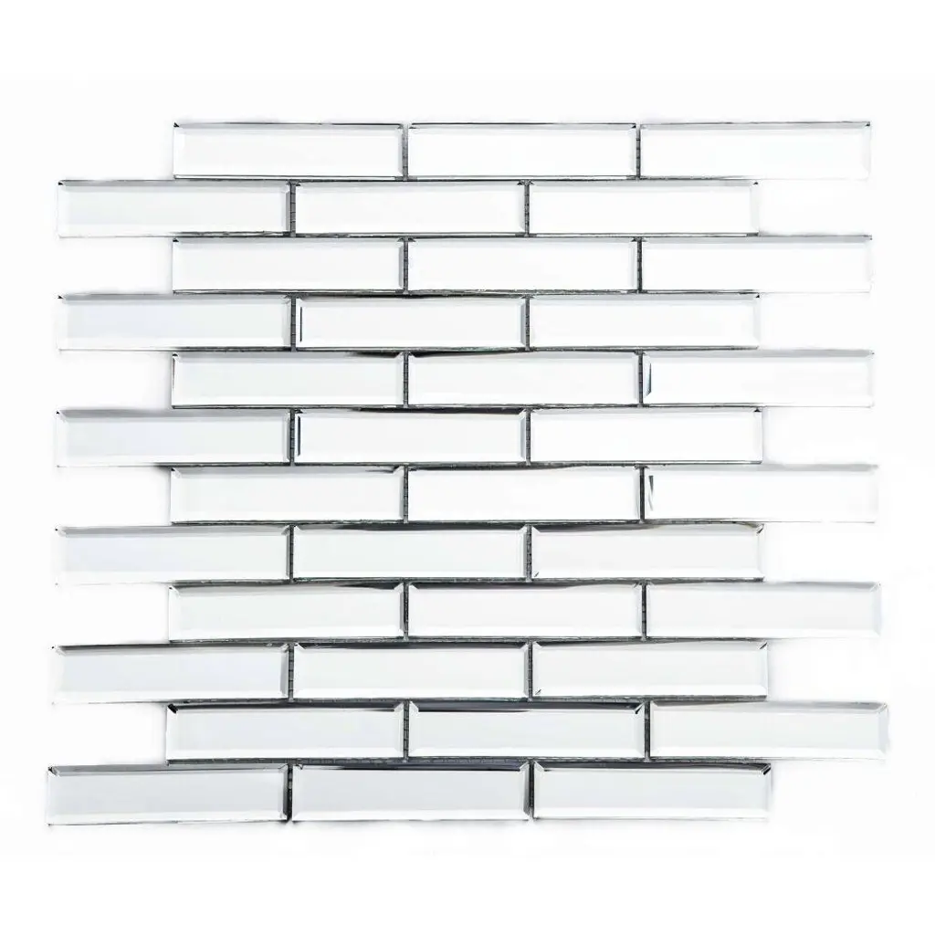 The Tile Life Beveled Brick 1" x 4" Glass Mosaic Wall Tile is a stylish and refined option to spruce up your backsplash or bathroom. With its sleek beveled edges and shiny silver color, it brings a modern touch and sophistication to any area. Made from top-notch glass, this glass mosaic wall tile is both durable and beautifully reflective. Embrace the modern charm of The Tile Life Beveled Brick 1 inch x 4 inches Glass Mosaic Wall Tile to turn your space into a classy retreat that mirrors your unique style and preferences. This 1" x 4" decorative glass mosaic wall tile is easy to install and perfect for backsplashes, bathrooms, kitchens, and walls. Its reflective surface enhances light and adds a polished look to any indoor setting. FEATURES: DIMENSIONS: