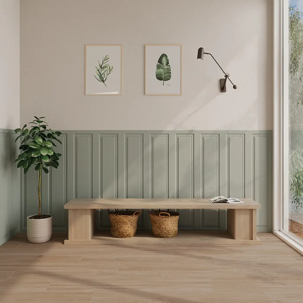 The Boudoir tile collection offers a refined take on the classic Boiserie style, featuring intricate carved wood paneling and molding-inspired details. Made from durable porcelain, these tiles come in three subtle colors: cream, blue, and green. Sized at 12x48 inches, they offer a smooth matte finish that complements both traditional and contemporary interiors. Boudoir brings texture and depth to any space, whether used for walls or floors, giving your home a sophisticated, architectural edge. FEATURES: A case of this product includes 4 pieces and covers 15.5 square feet Porcelain, singular, matte, rectangle, pressed edge floor and wall tile Impervious and waterproof; Not suitable for outdoor use but are resistant to most elements Matte finish with a shade 1 rating/ variation (V1 uniform appearance) Refined Boiserie-inspired design Durable porcelain material for long-lasting quality Available in three subtle colors: cream, blue, and green Sized at 12x48 inches, ideal for both walls and floors Features a smooth matte finish Perfect for enhancing both traditional and contemporary interiors Ideal for bathrooms, showers, kitchens, floors, walls Approved for residential and commercial installations Intended for indoor use only Easy to install 12" x 48" large format porcelain floor and wall tile Available in three colors: Cream (Etereo), Blue (Indigo), and Tomillo (Green) DIMENSIONS: Individual tile size: 12 inches L x 48 inches W Surface area per carton: 15.5 square feet Sample tile size: 4 inches L x 4 inches W