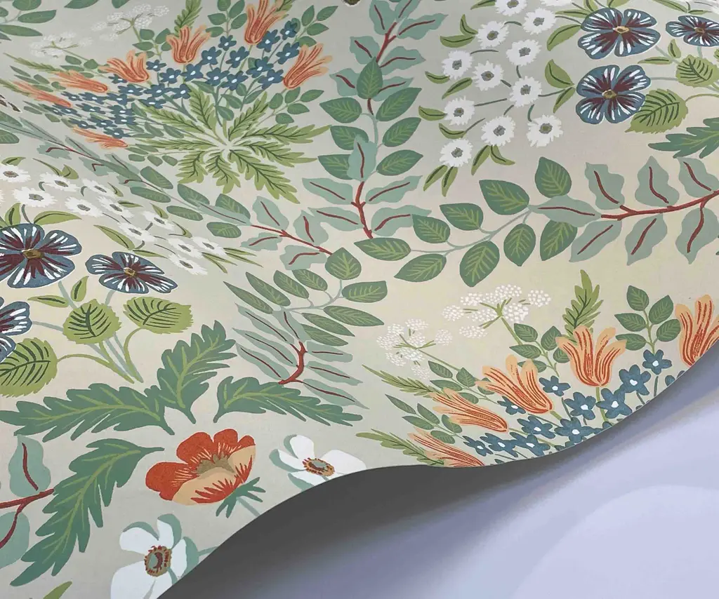 8 × 10" sample of our Bramble wallpaper. Inspired by organic, abstract floral motifs of Art Nouveau textile designs, Bramble is a detailed print that incorporates iconic Rifle Paper Co. floral elements into a mirrored design. This wallpaper is screen printed and comes in 27 inch rolls with a 25.25 inch repeat. Please note that wallpaper samples are cut at random, and pattern placement of the sample you receive will not match the photo featured here.