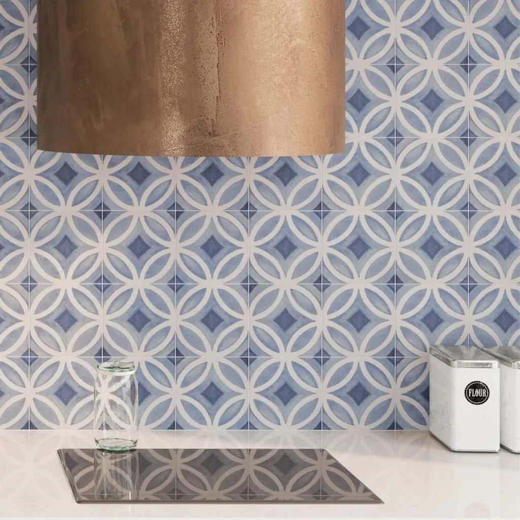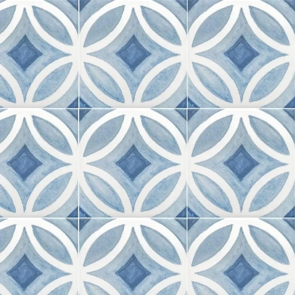 Crafted in Spain, the Cadence collection captures the beauty of intricate pattern work on a smooth, matte porcelain surface, bringing a sense of quiet artistry to any space. Inspired by traditional encaustic designs, each tile carries a depth of detail that feels both rich and effortless. Available in four versatile shades—Sky, Noir, Black, and Grey—Cadence adapts beautifully to both indoor and outdoor settings, lending a touch of old-world craftsmanship to modern surroundings. Whether underfoot or as a statement wall, it brings a rhythmic flow to the spaces it inhabits. FEATURES: A case of this product includes 25 pieces and covers 6.03 square feet Porcelain, singular, geometric, encaustic, patterned, matte, pressed, straight edge floor and wall tile Impervious and waterproof; Withstands sun and rain Matte finish with a shade 1 rating/ variation (V1 uniform appearance) Made in Spain Crafted from durable, long-lasting porcelain Features a modern, subtle matte finish Available in four (4) versatile colors: Sky, Noir, Black, and Grey Intricate encaustic patterned design to peak visual interest Suitable for interior and exterior spaces This product has a PEI rating of 3 (endurance and hardness indicator) and therefore is suited for residential countertops, walls, and medium-traffic floors Ideal for backsplashes, bathrooms, showers, kitchens, outdoors, pools, floors, walls Approved for residential and commercial installations Easy to install 6 inches x 6 inches decorative geometric pattern porcelain floor and wall tile DIMENSIONS: Individual tile size: 6 inches L x 6 inches W Surface area per carton: 6.03 square feet Sample tile size: Full size 6 inches L x 6 inches W
