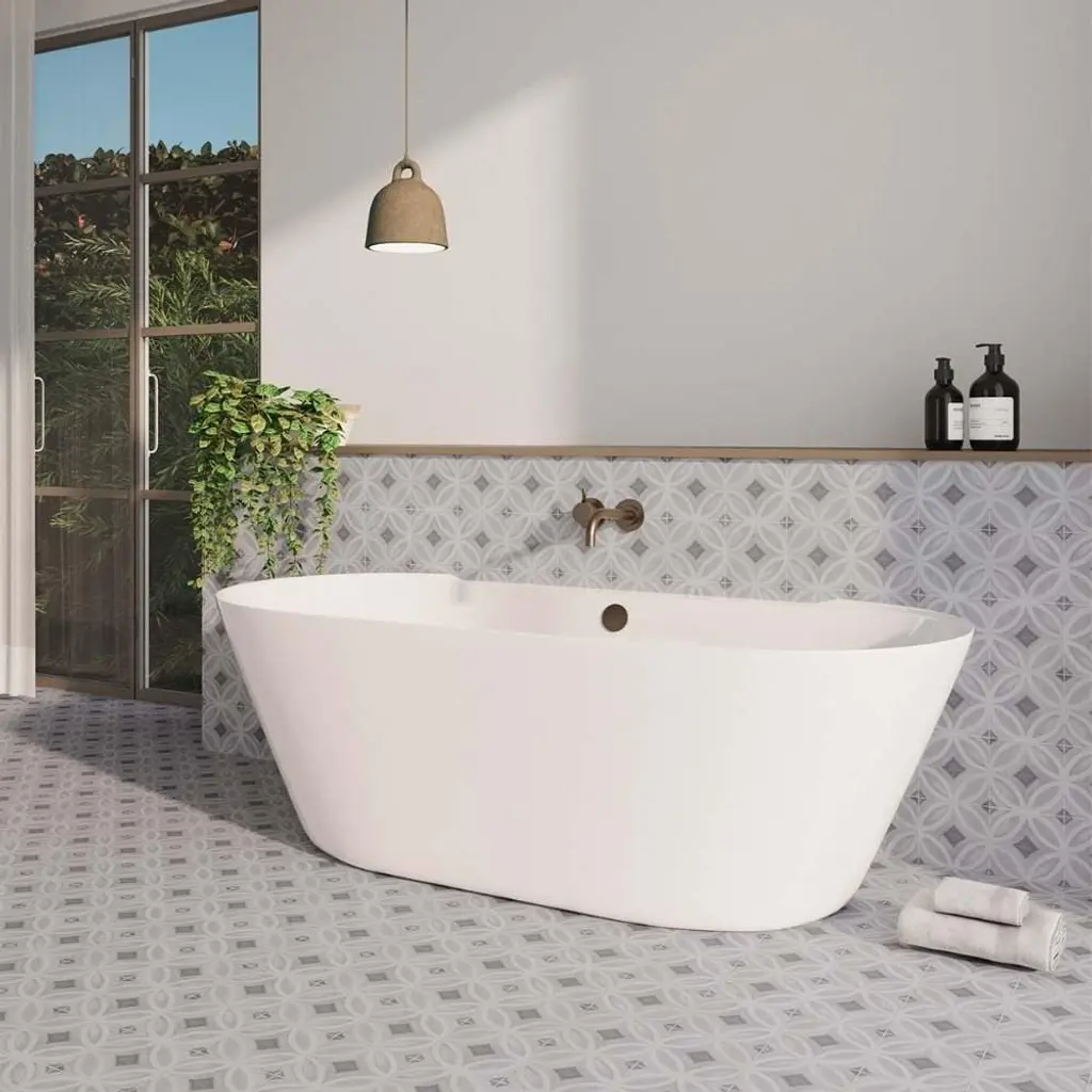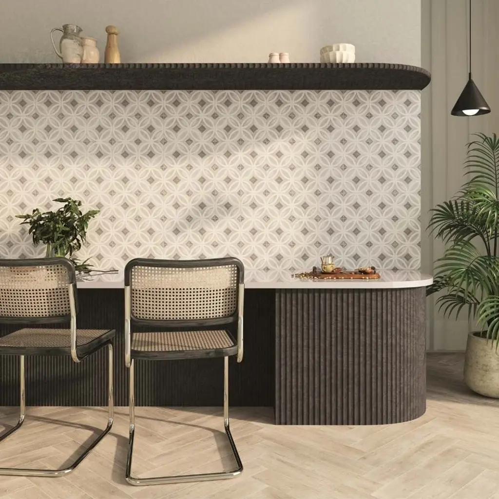 Crafted in Spain, the Cadence collection captures the beauty of intricate pattern work on a smooth, matte porcelain surface, bringing a sense of quiet artistry to any space. Inspired by traditional encaustic designs, each tile carries a depth of detail that feels both rich and effortless. Available in four versatile shades—Sky, Noir, Black, and Grey—Cadence adapts beautifully to both indoor and outdoor settings, lending a touch of old-world craftsmanship to modern surroundings. Whether underfoot or as a statement wall, it brings a rhythmic flow to the spaces it inhabits. FEATURES: A case of this product includes 25 pieces and covers 6.03 square feet Porcelain, singular, geometric, encaustic, patterned, matte, pressed, straight edge floor and wall tile Impervious and waterproof; Withstands sun and rain Matte finish with a shade 1 rating/ variation (V1 uniform appearance) Made in Spain Crafted from durable, long-lasting porcelain Features a modern, subtle matte finish Available in four (4) versatile colors: Sky, Noir, Black, and Grey Intricate encaustic patterned design to peak visual interest Suitable for interior and exterior spaces This product has a PEI rating of 3 (endurance and hardness indicator) and therefore is suited for residential countertops, walls, and medium-traffic floors Ideal for backsplashes, bathrooms, showers, kitchens, outdoors, pools, floors, walls Approved for residential and commercial installations Easy to install 6 inches x 6 inches decorative geometric pattern porcelain floor and wall tile DIMENSIONS: Individual tile size: 6 inches L x 6 inches W Surface area per carton: 6.03 square feet Sample tile size: Full size 6 inches L x 6 inches W
