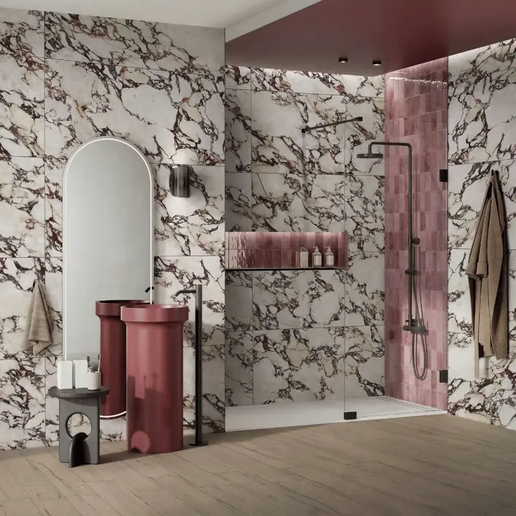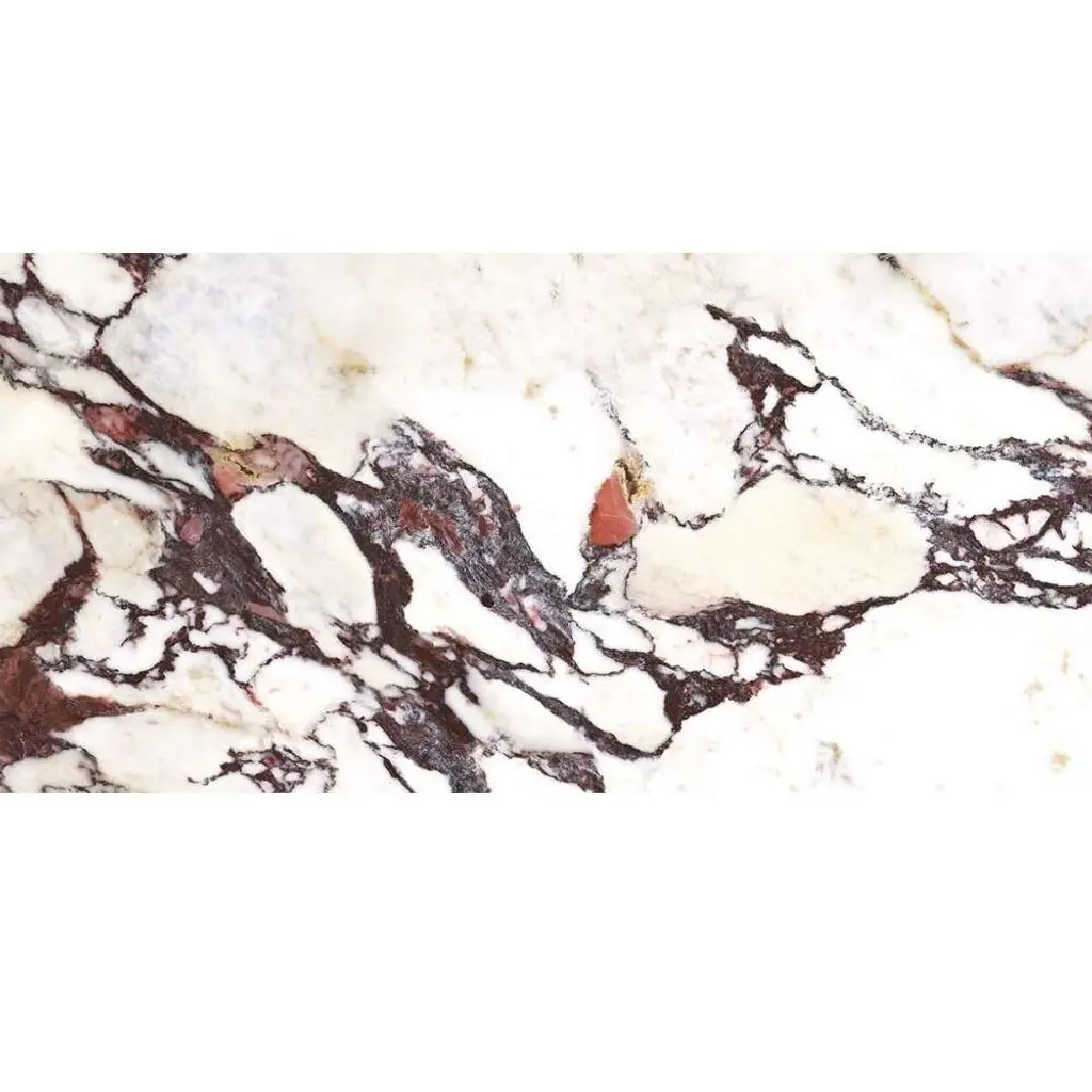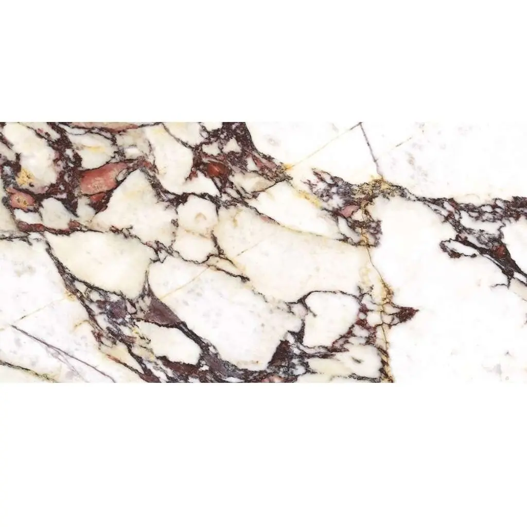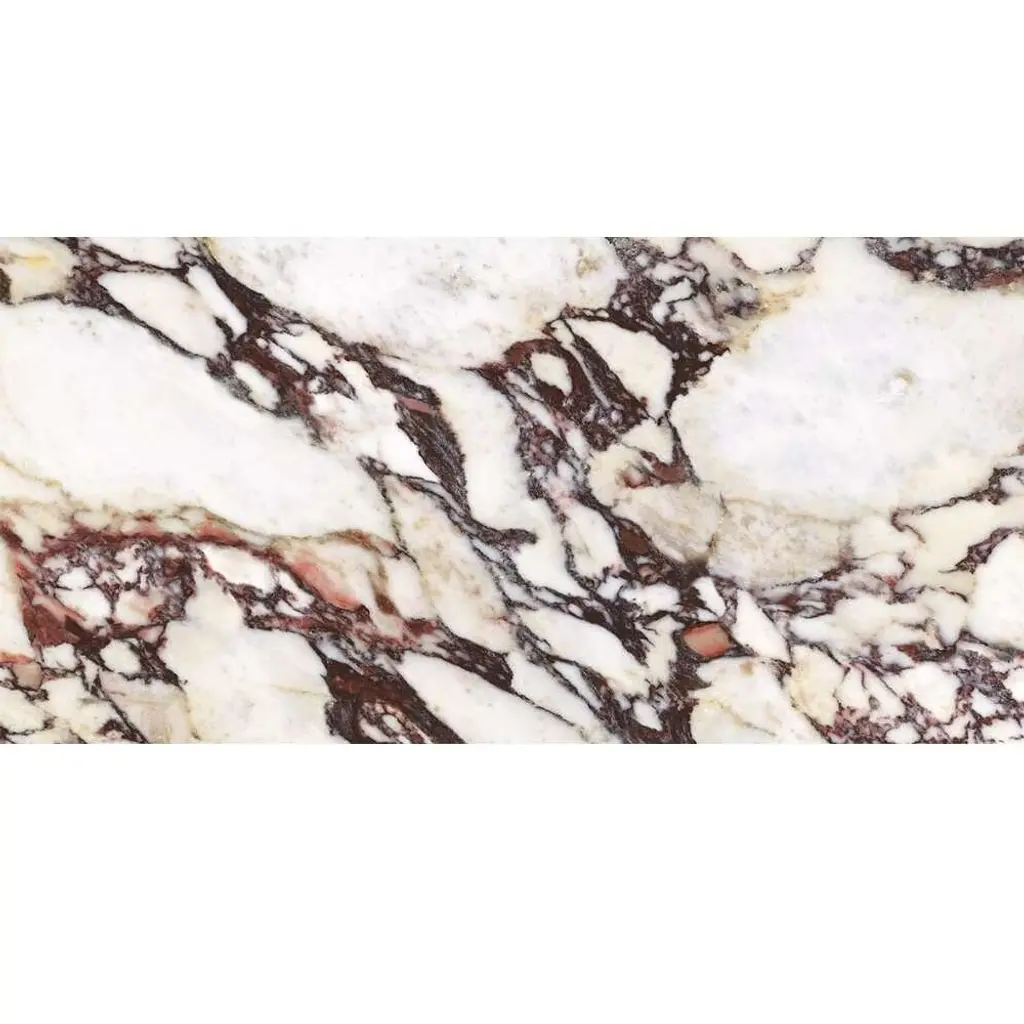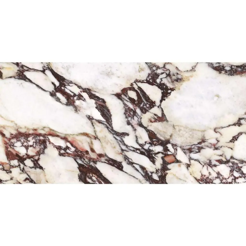 An ode to classic Gothic design, our Cala Rosso Collection proves itself to be a tile trend that will stand the test of time. As an exceptionally realistic replica of marble, Cala Rosso curates an air of elevated ambiance in every room. This collection's blend of tea-stained marble with deep brown and red veining results in the perfect marriage of high-end contemporary style and ornate tile design. A chameleon in tile artistry, Cala Rosso is versatile in its design abilities. Enjoy its power to blend seamlessly with light or dark rooms through its veining and tile color contrast. Cala Rosso is a quintessential tile installation for any kitchen, bathroom, or living room space. FEATURES: A case of this product includes 7 pieces and covers 13.56 square feet Porcelain, singular, glossy, marble look, rectangle, rectified, straight edge tile for floor, wall use Glossy finish with a shade 3 rating/ variation - V3 moderate variation Impervious and waterproof; Withstands sun and rain Bold, exotic Italian marble appearance with striking purple veins High-end aesthetic for a luxurious feel Cala Rosso Viola: a harmonious blend of nature and design Natural variations create a sense of spaciousness in any room Ideal for bathrooms, showers, kitchens, pools, fireplace surrounds, outdoors, floors, walls Approved for residential and commercial indoor and outdoor installations Easy to install 12" x 24" large format decorative porcelain tiles DIMENSIONS: Individual tile size: 12 inches x 24 inches Surface area per carton: 13.56 square feet Pieces per carton: 7