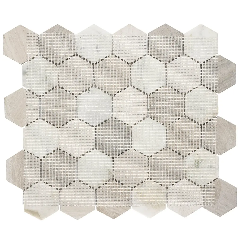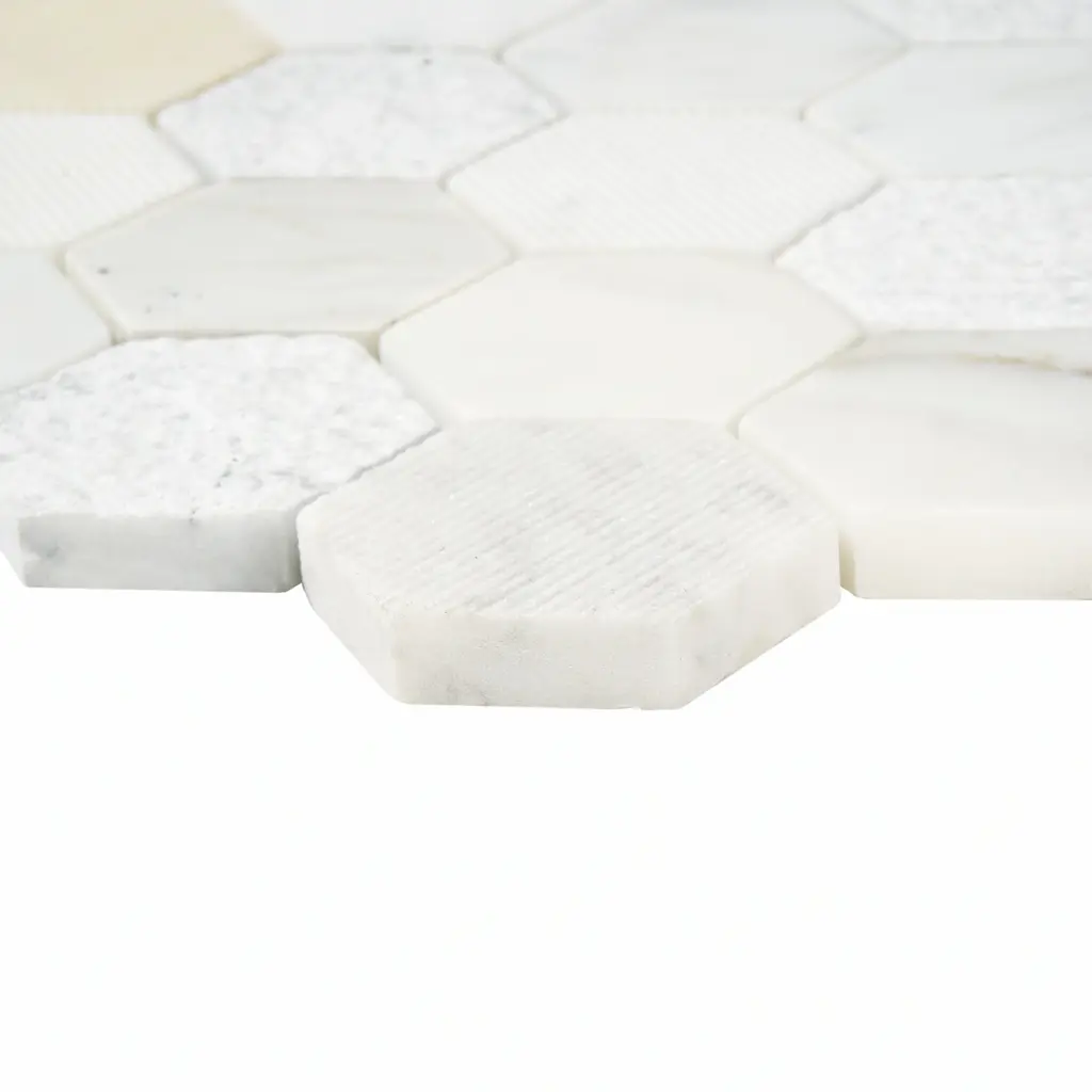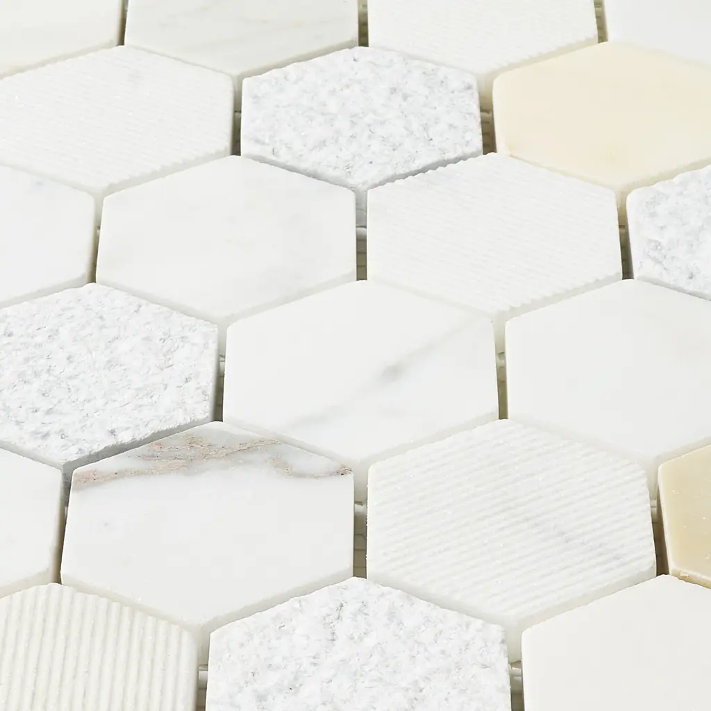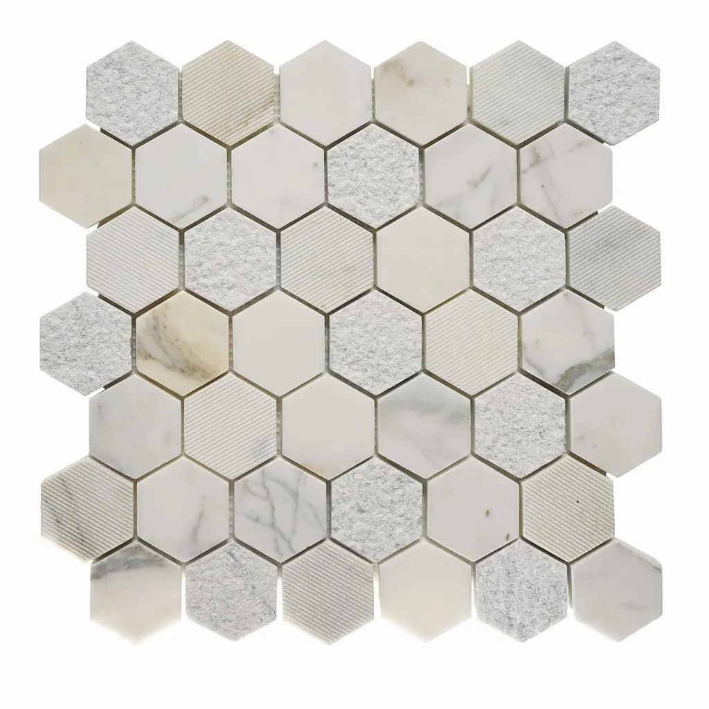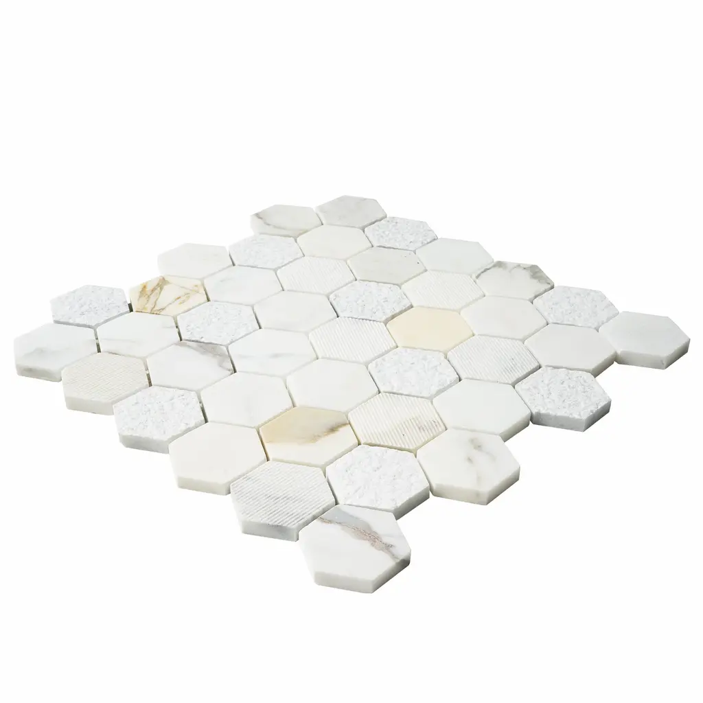 Calacatta Marble 2" X 2" Textured Honeycomb Mosaic Tile - Sample - White