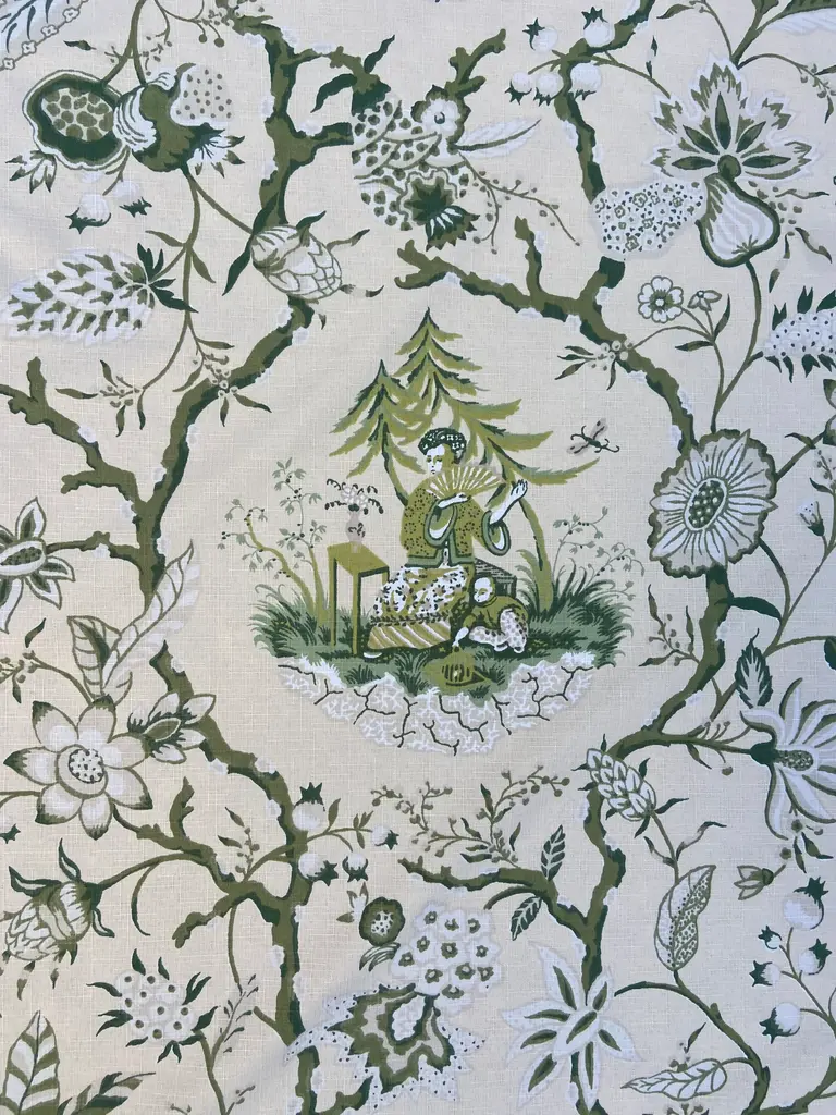 8 × 10" sample of our Camont wallpaper. Inspired by an 18th-century farmhouse in Gascony, France and an antique pattern from York's archives, Camont features illustrated fig trees, lemon trees, chickens, and flowers of its pastoral grounds. Please note that wallpaper samples are cut at random, and pattern placement of the sample you receive will not match the photo featured here.