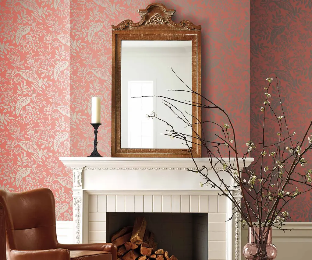 Canopy Wallpaper Sample - Rose & Metallic Silver