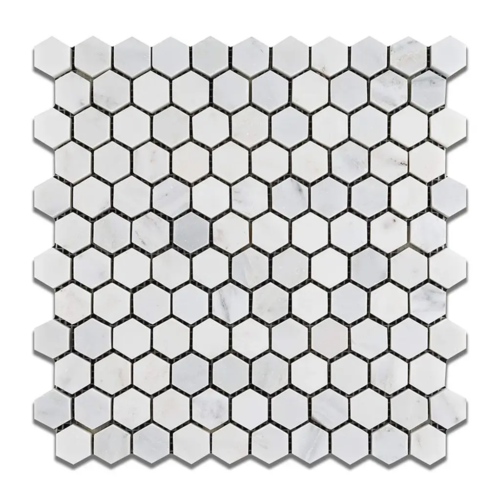 Carrara Marble Mosaic Tiles are a timeless and versatile choice for any home renovation project. Made from genuine Carrara marble, which is known for its crisp white or blue-gray hues, these tiles exude an air of elegance and luxury. They are perfect for adding a touch of sophistication to any room, making them a popular choice for bathrooms, kitchens, and backsplashes. One of the biggest advantages of Carrara White Mosaic Tiles is their durability and easy maintenance. These tiles are able to withstand high traffic and heavy use.What's included?Product Details Sample Details