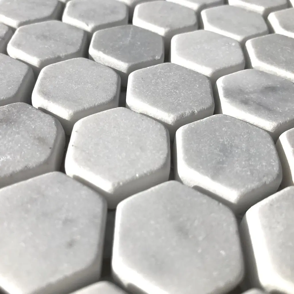 Carrara Marble 1" X 1" Honeycomb Tumbled Mosaic Tile - Sample - White
