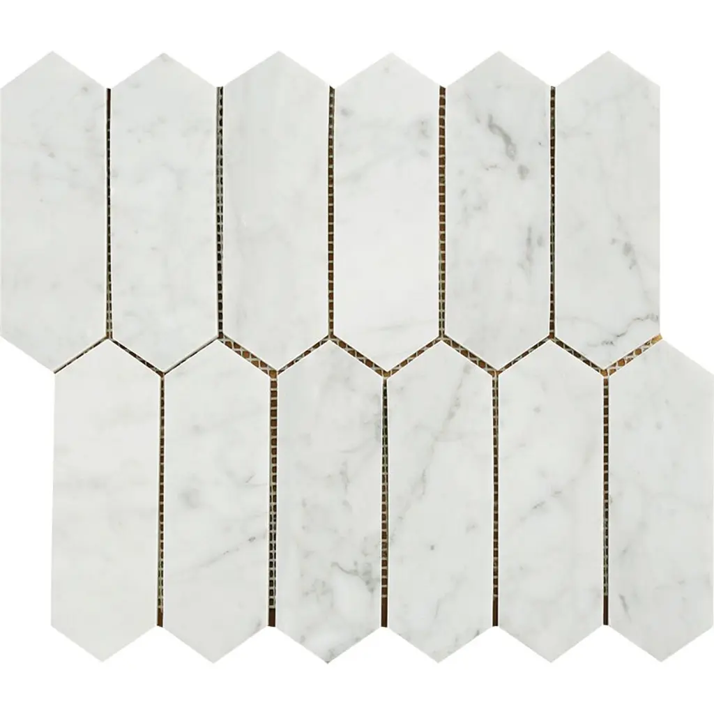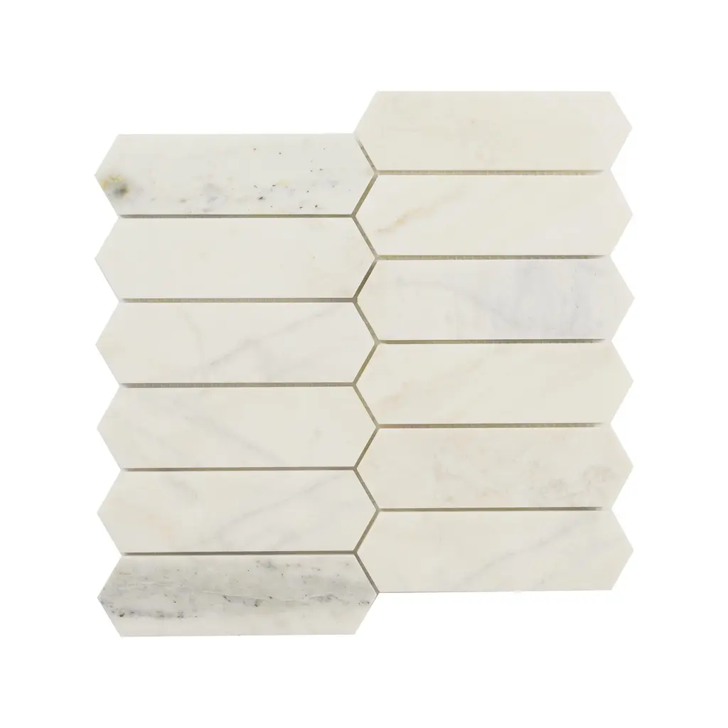 Carrara Marble 2" X 6" Long Hexagon Polished Mosiac Tile - Sample - White
