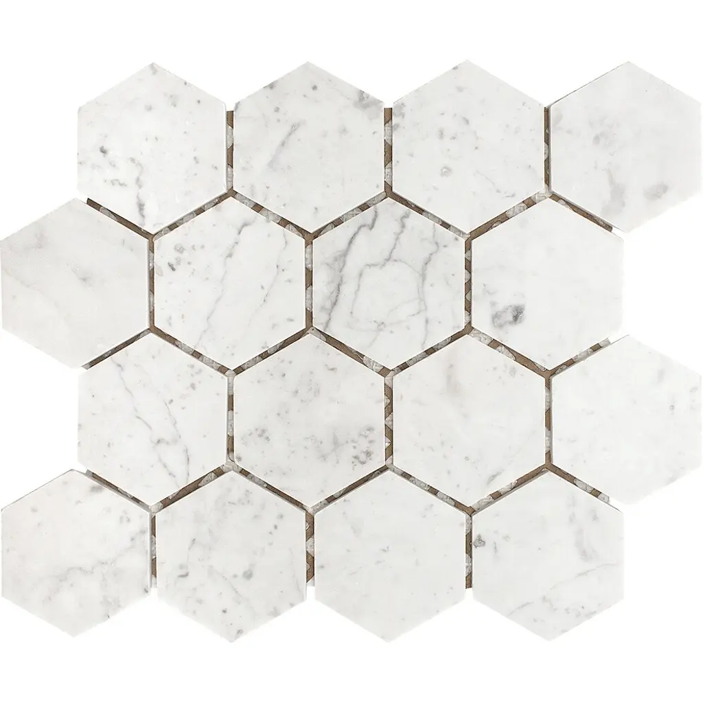 Carrara Marble 3" X 3" Honeycomb Honed Mosaic Tile - Sample - White