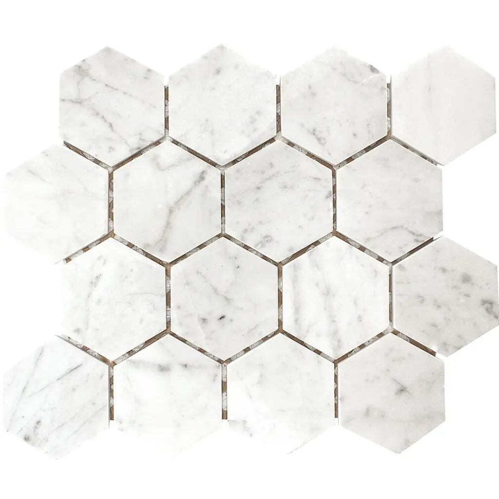 Carrara Marble 3''x3'' Honeycomb Polished Mosaic Tile - Sample - White