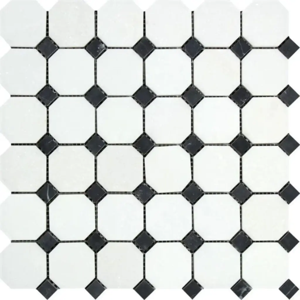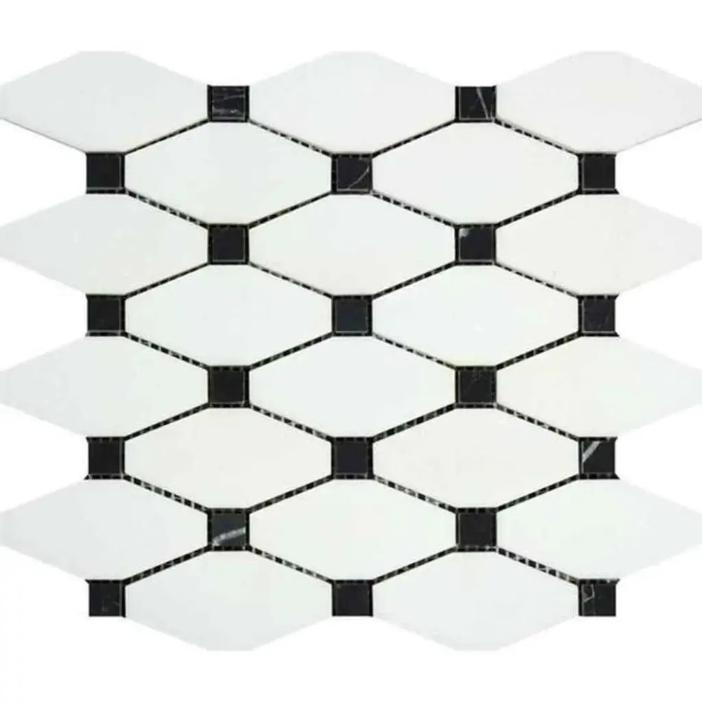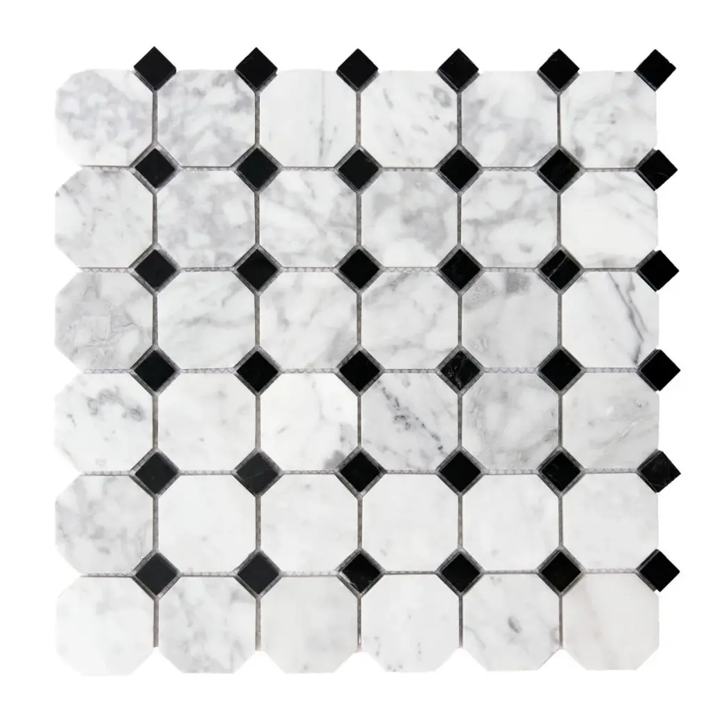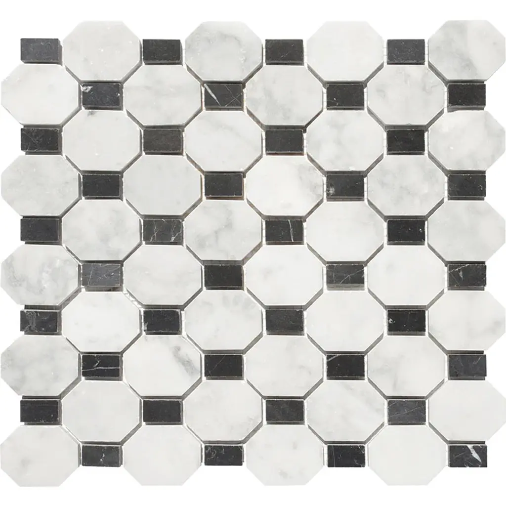 Add a touch of elegance and luxury to your home renovation project with Carrara Marble Octagon Elongated Mosaic Tile. Made from genuine Carrara marble, these tiles feature crisp white or blue-gray hues that exude sophistication. The durability and easy maintenance of these tiles make them perfect for high traffic areas. Use them in bathrooms, kitchens, or as a backsplash to elevate the style of any room.Features:Product Details: