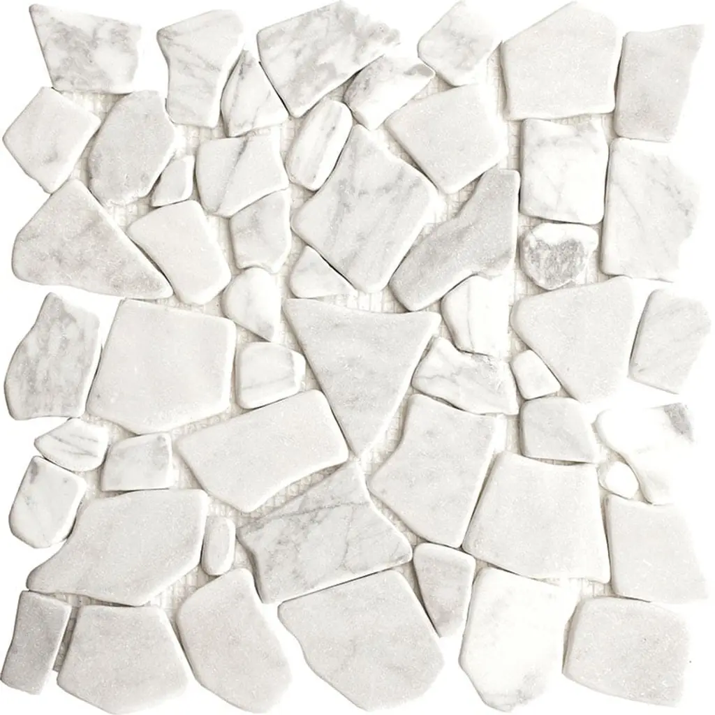 Introducing our Carrara Marble Puzzle Mosaic Tile, a timeless and versatile choice for your home renovation project. Made from genuine Carrara marble, known for its crisp white or blue-gray hues, these tiles bring an air of elegance and luxury to any space. With their sophisticated design, they are perfect for adding a touch of class to your bathroom, kitchen, or backsplash. The Carrara White Mosaic Tiles are not only beautiful but also highly durable, able to withstand high traffic and heavy use. Experience the durability and easy maintenance of these exquisite tiles.Features:Product Details: