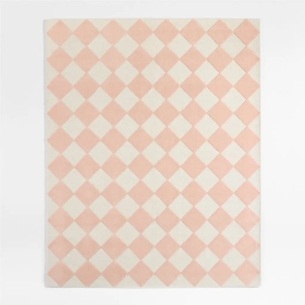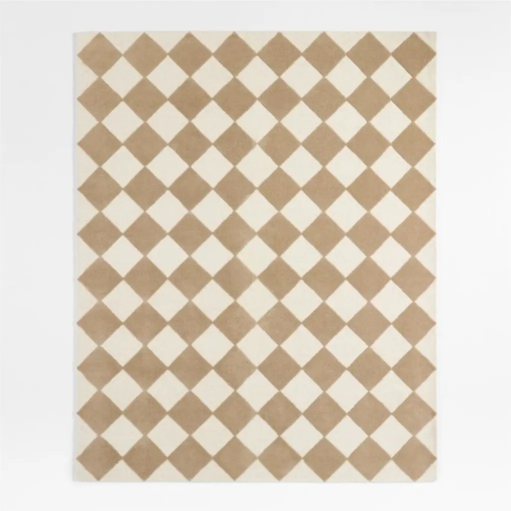 Try it on first. Because color representation may vary by screen, using a swatch is an easy way to see exactly how your favorite rugs will look in your home. Our rug swatches ship free and can be returned online or at a store near you for a full refund. It's fast, easy and free.Check it outour playful Checkerboard wool area rug makes a bold style statement in kids' bedrooms, playrooms and nurseries. And we love the durable long-fiber wool, expertly chosen for stain resistance and reduced shedding. Each rug is hand-tufted by skilled artisans in a checkerboard pattern with high-low construction for extra texture and dimension. The wool's dense cushioning makes it a supremely plush and sturdy choice.