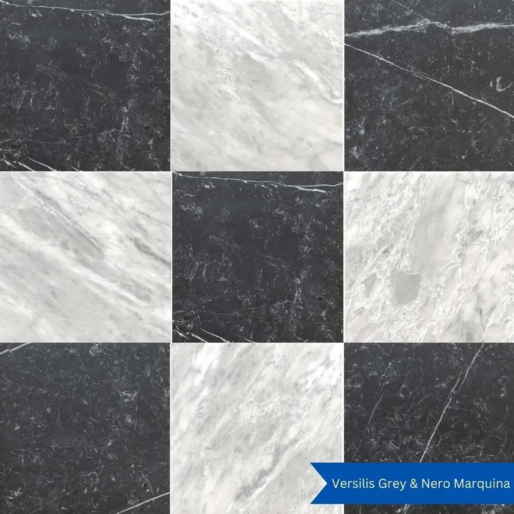 Introducing the Checkmate Collection, a lavish reimagining of the traditional checkerboard pattern. This exquisite collection offers an interchangeable checkerboard design, allowing for a personalized and dynamic aesthetic by mixing an array of colors. Available in Nero Marquina, White Carrara, and Versilis Grey, Checkmate offers you the ability to curate a bold contrast or a subtle, monochrome look. Elevated through its honed finish, this collection provides a smooth, matte surface that exudes luxury and refinement, enhancing the natural beauty of the marble. Checkmate is ideal for any kitchen, bathroom, or living room installation. FEATURES: A case of this product includes 10 pieces and covers 10 square feet Marble, singular, square, honed, rectified edge floor and wall tile Impervious and waterproof; Suitable for covered outdoors only Honed finish with a V2 slight variation Crafted in Italy Interchangeable checkerboard pattern available by mixing colors Luxury-grade, honed, first-quality marble Each small-batch production undergoes a rigorous selection process, ensuring only the most exceptional products reach the market Precision cutting technology Ideal for backsplashes, bathrooms, kitchens, outdoors, floors, walls Approved for residential and commercial installations Intended for indoor and covered outdoor use only Easy to install 12" x 12" small format marble floor and wall tile Available in three colors: Carrara, Versilis Grey, and Nero Marquina DIMENSIONS: Individual tile size: 12 inches L x 12 inches W Surface area per carton: 10 square feet Sample tile size: 4 inches L x 4 inches W