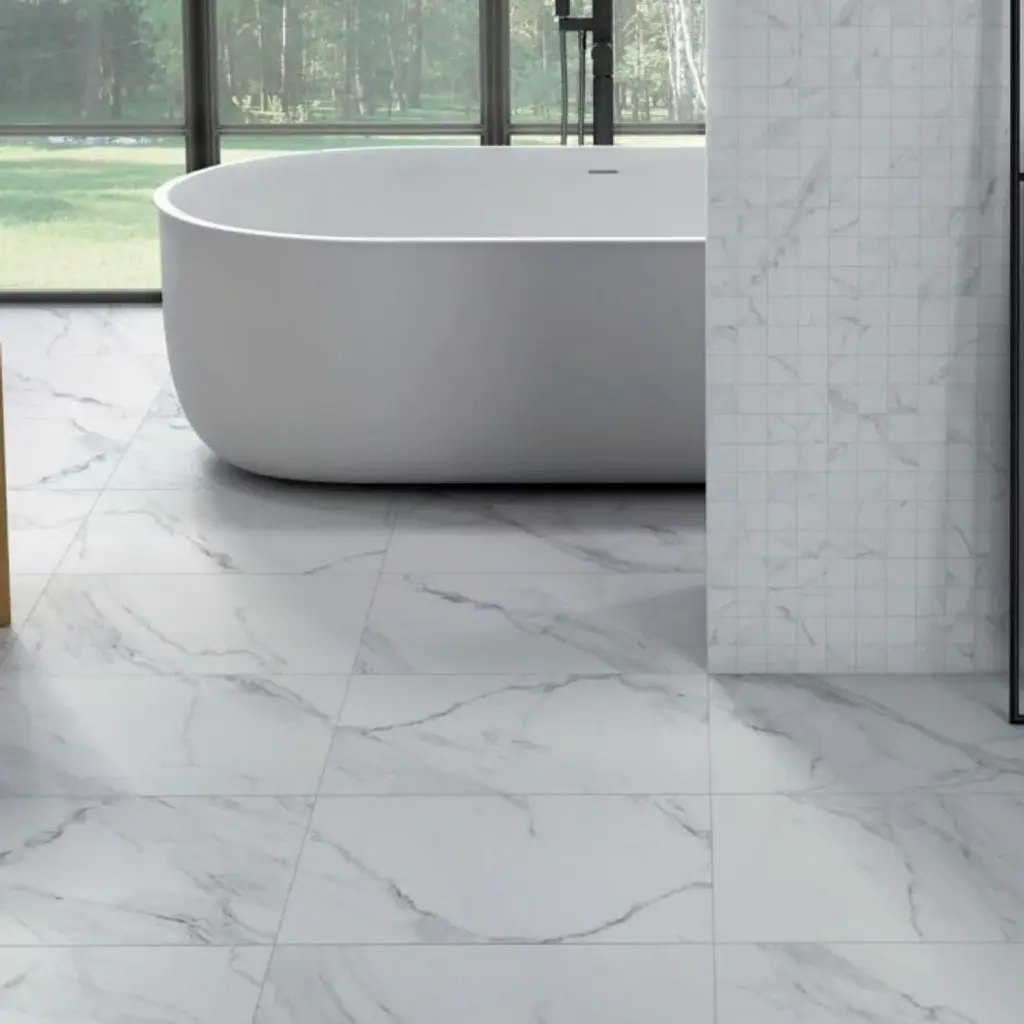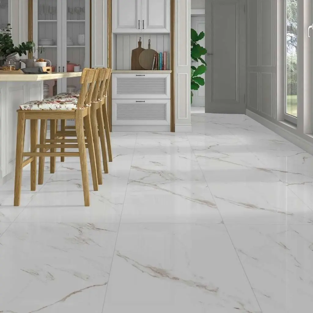 Get the look of natural stone with this beautiful Cheyenne porcelain tile. Cheyenne is available in 12 x 24 and 24 x 24 sizes. The Tile Life Cheyenne 12 x 24 large format porcelain tile comes in white and has a glossy finish. It will give you beautiful fade-resistant variations of natural stone with the added benefit of easy maintenance. It's already resistant to staining, so there is no need to seal this tile. FEATURES: DIMENSIONS: