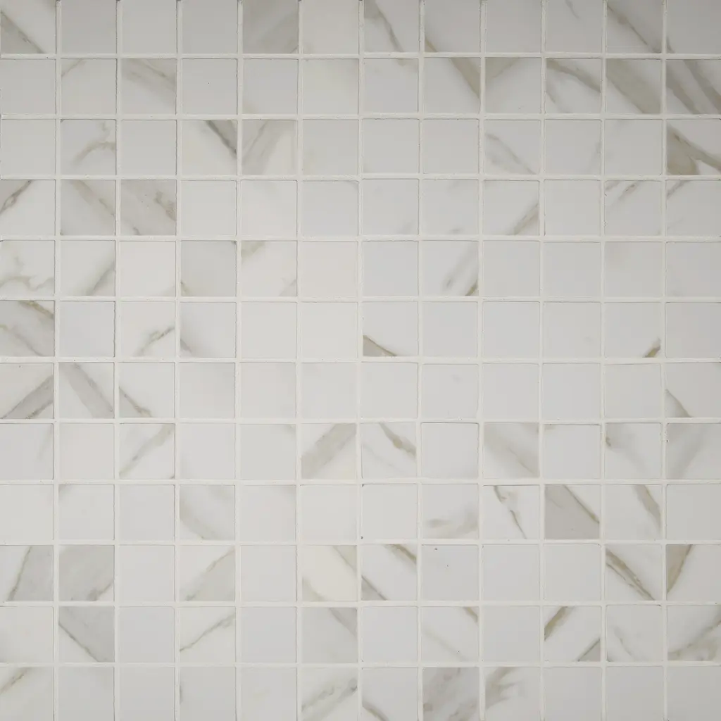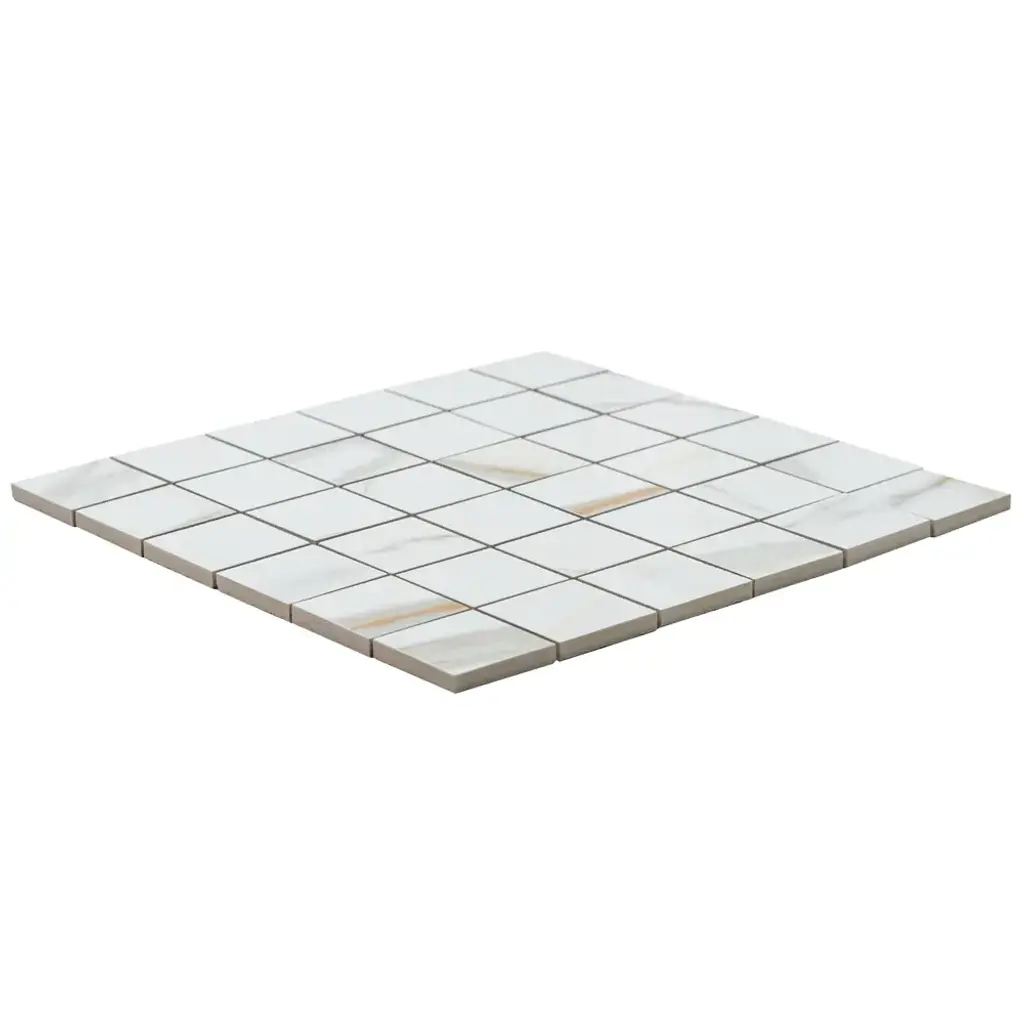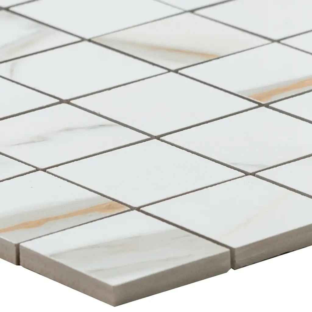 Chronos 2" X 2" White/ Gold Porcelain Floor And Backsplash Wall Tile - 4 X 4 Sample