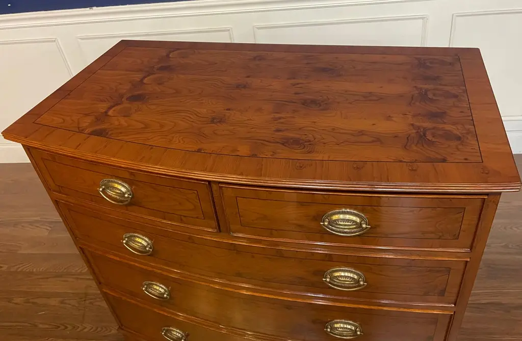 Classic Inlaid Bow Front Yew Wood Chest By Leighton Hall - Showroom Sample