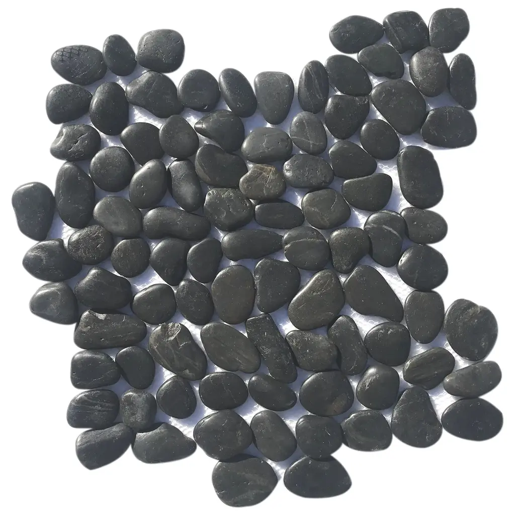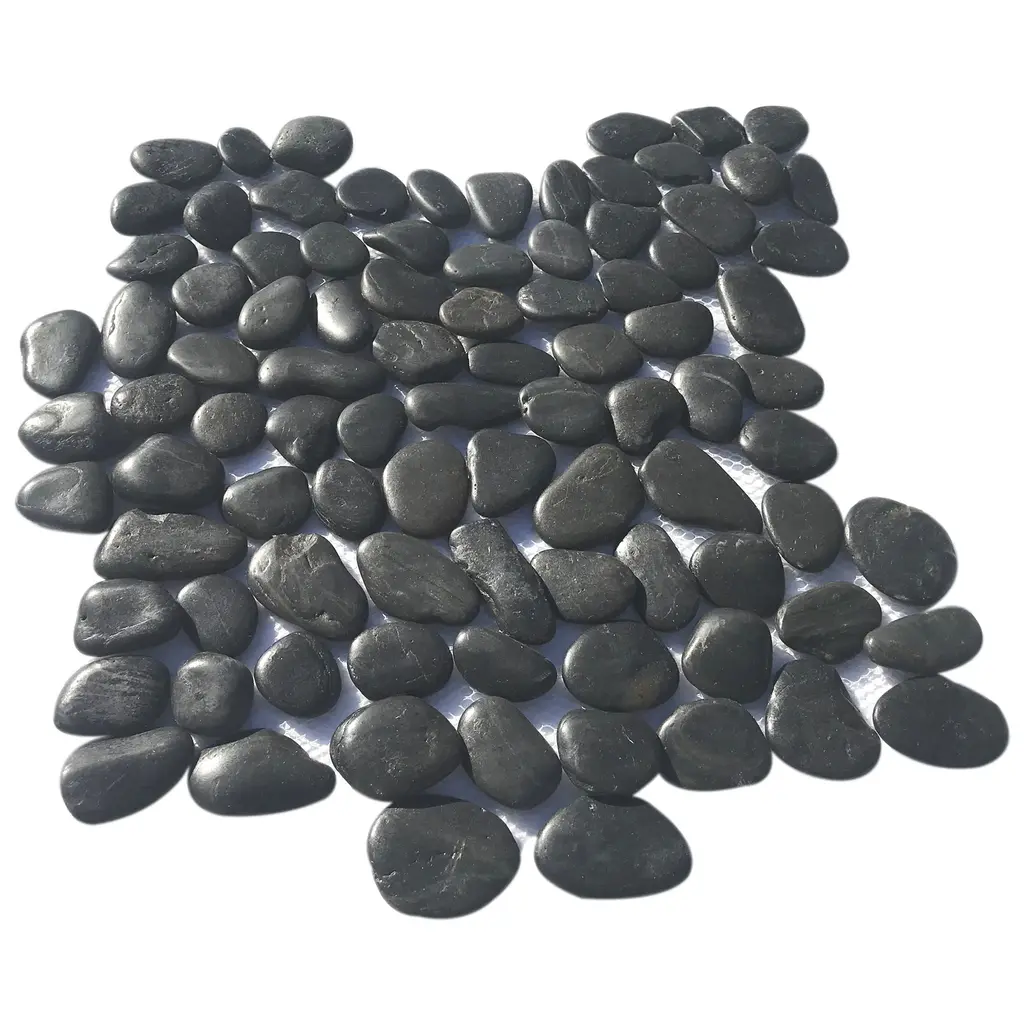 They incorporate smooth beautifully mixed pebbles mounted to a flexible mesh backing. Perfect for interior or exterior projects, pebble tiles create a beautiful and unique decorative mosaic look. Add a custom touch to all your floor and wall projects. Tiles are easy to install and use traditional tile grout.Product DetailsSample Details