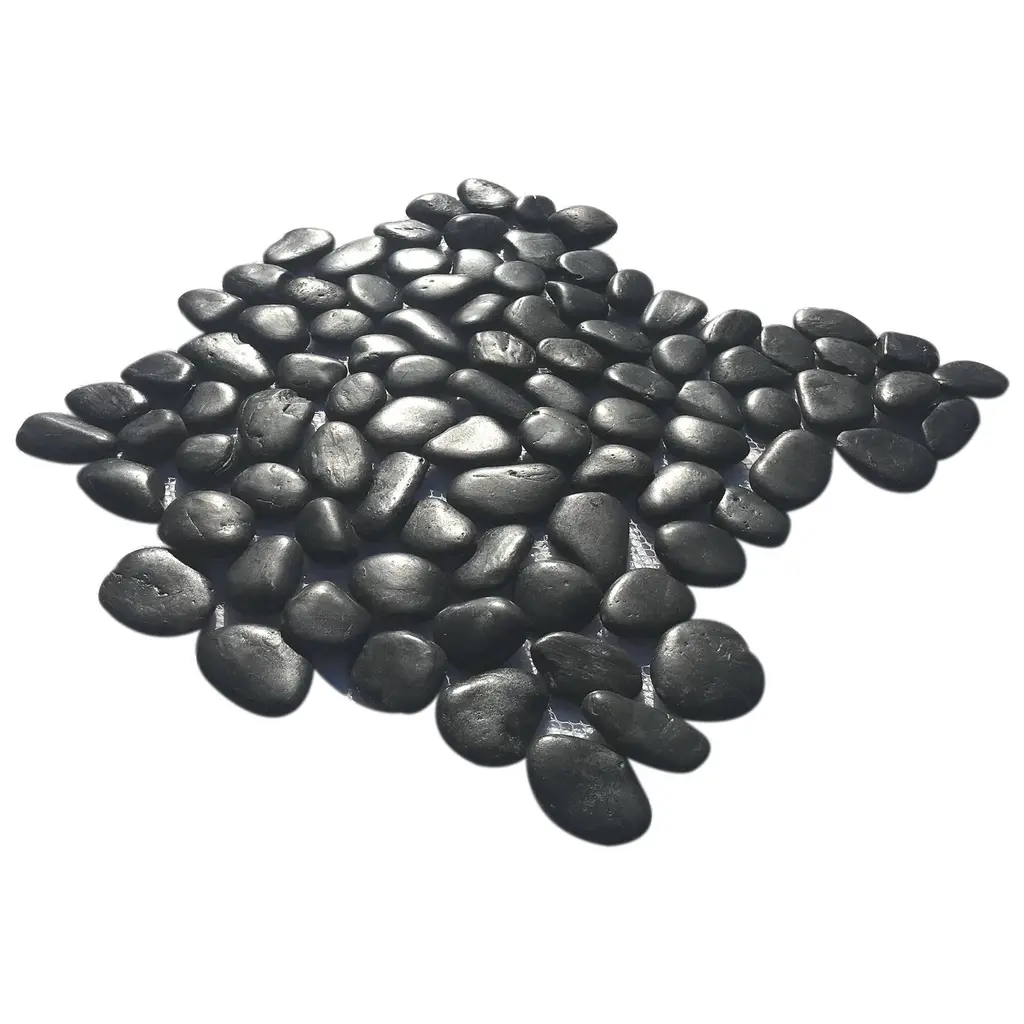 Coal Black Natural Stone Pebble Mosaic Tile - Sample - Black